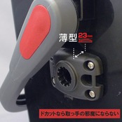 ネジで取り付けるタイプの最もスタンダードな取付ベースです。取付面の邪魔にならない薄型設計で、アタッチメントをがっちり固定できるロック付。ロックボタンを押すだけでアタッチメントの抜き差しが簡単に行えます。