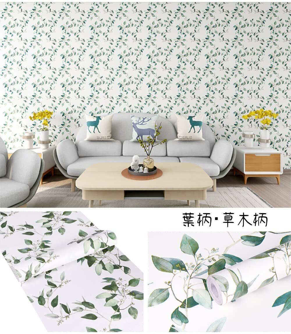 【仕様】サイズ:約45cm*10m; 素材:PVC; 接着剤不要。 柄:草木柄 仕入れる生産ロットにより、色合いや模様の出方が若干変わる場合がございます。予めご了承ください。できるだけ一回で足りる分をご購入ください。