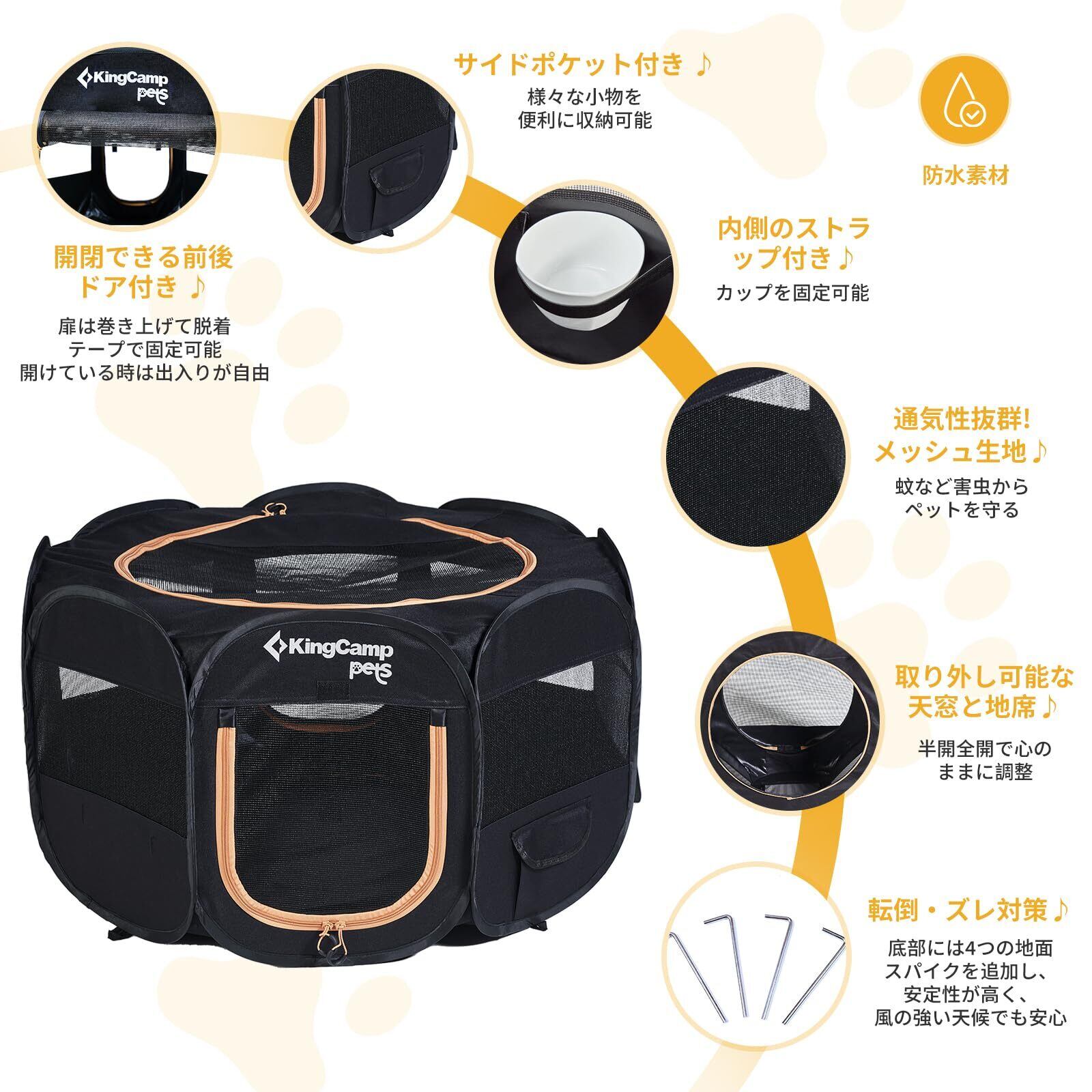 KingCamp ペットサークル ドッグハウス 大型犬 八角形 折りたたみ メッシュサークル 猫 犬 兼用 プレイサークル ペットケージ 軽量 持ち運び 室内 アウトドア キャンプ お出かけ用品 幅広127 cm 高60 cm L
