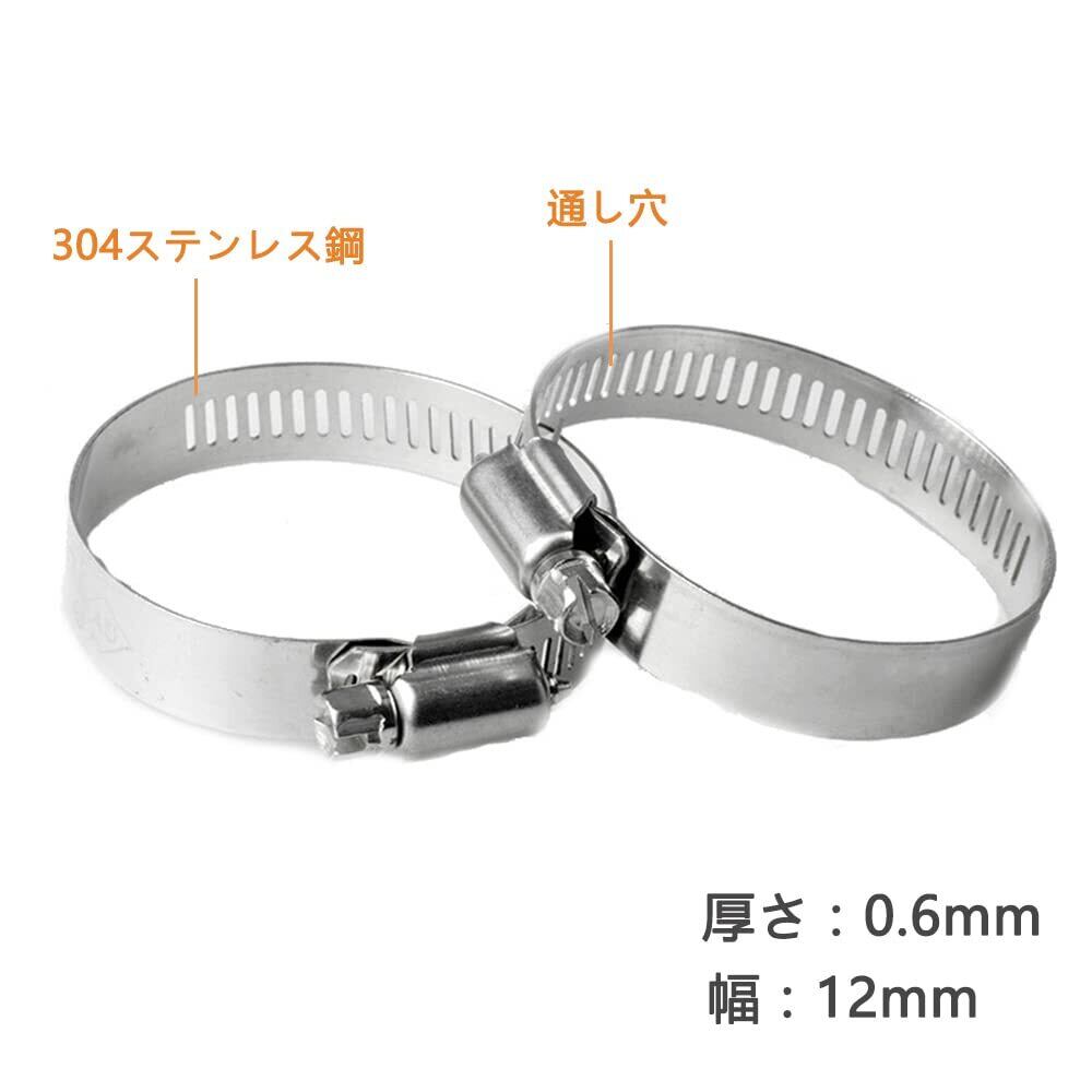 2.このホースバンドはφ40-63mmに対応で調整可能です。厚さ:0.6mm;幅:12mm。