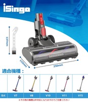 【対応機種】:ダイソン V7 V8 V10 V11V15シリーズ専用 モーターヘッド(Slimは一部非対応) ※その他の機種は非対応になりますのでご注意ください。サイズ:250mm x 115mm / 重量:約948g(ヘッド部分だけ)。