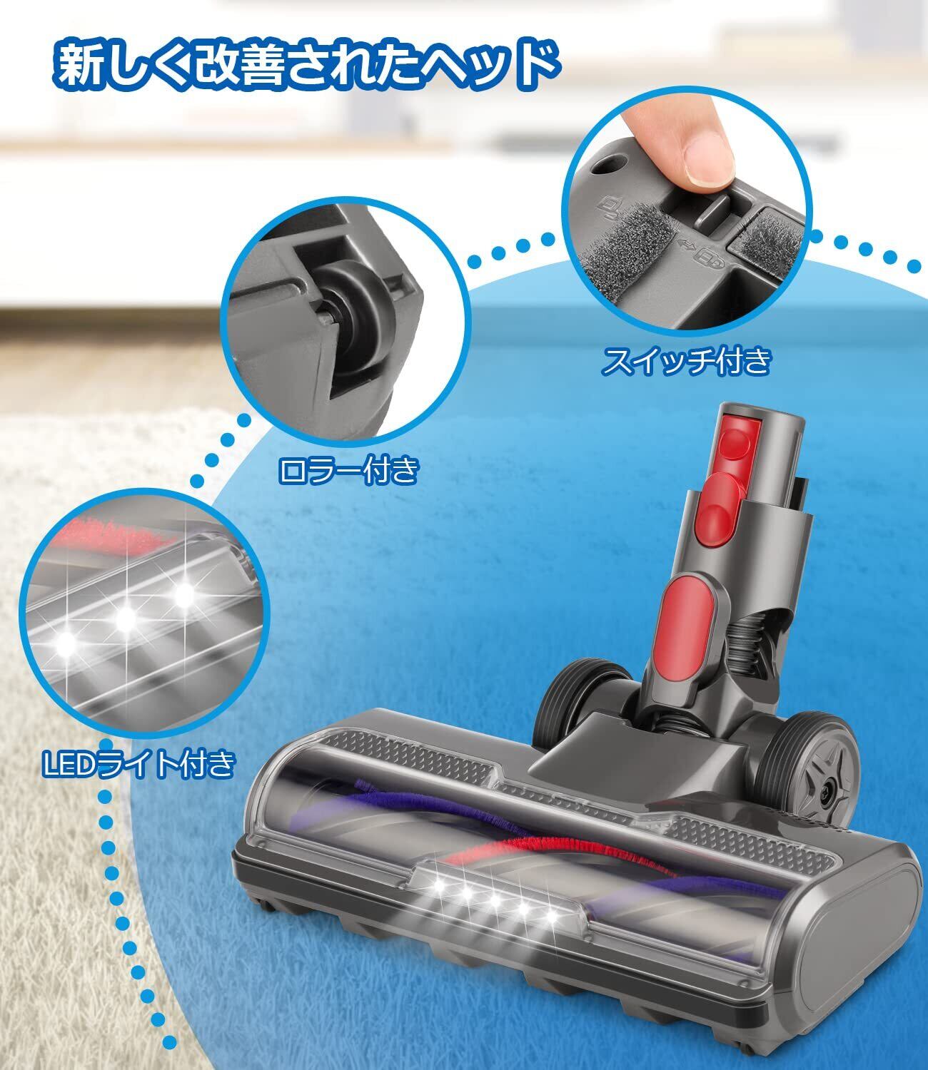 【数量限定】ダイソン v7 ヘッド 用【2025最新強化版】 Dyson V7 V8 V10 V11 V15 シリーズ 用 掃除機ヘッド ソフトローラークリーナーヘッド LEDモーターヘッド 交換部品 アクセサリー 互換品