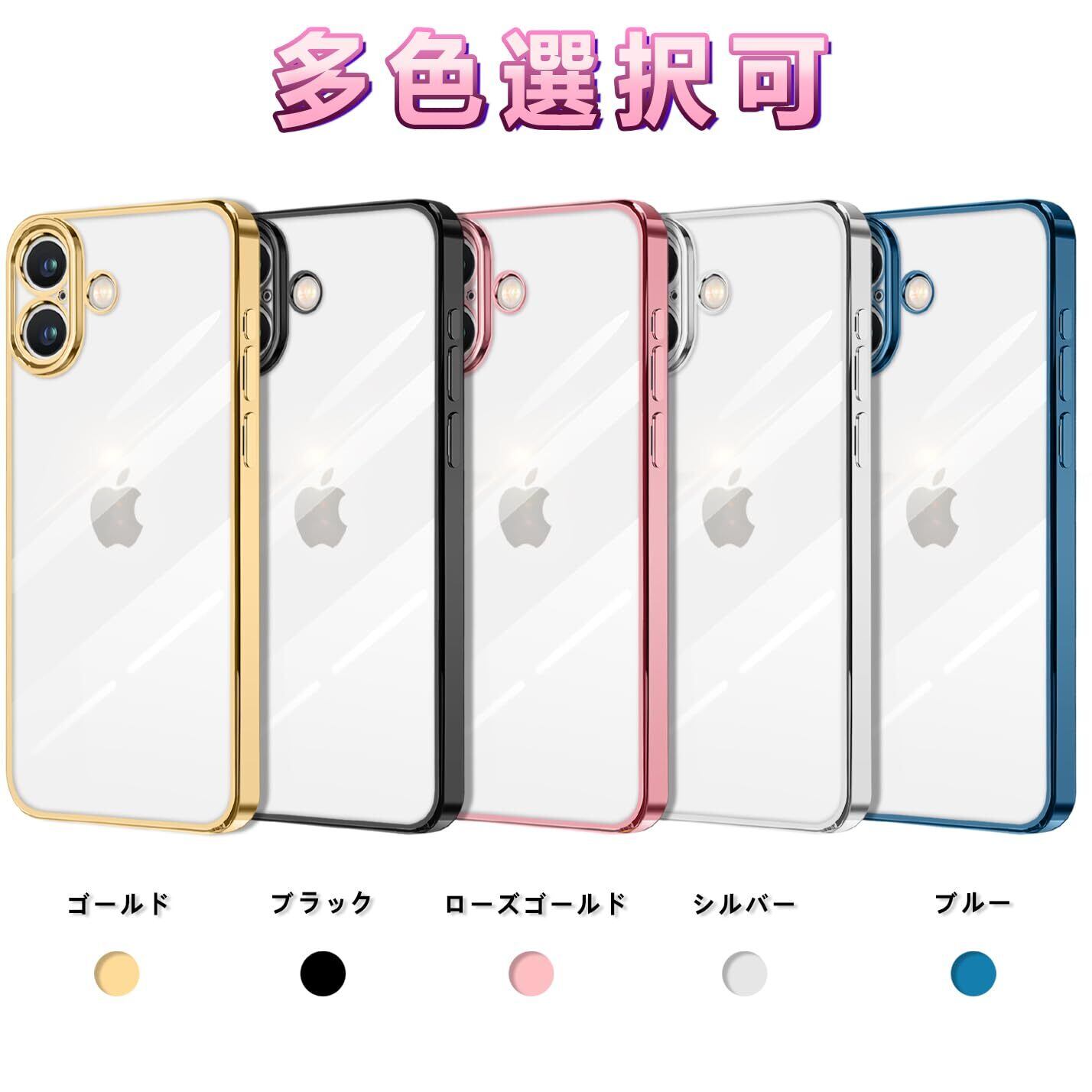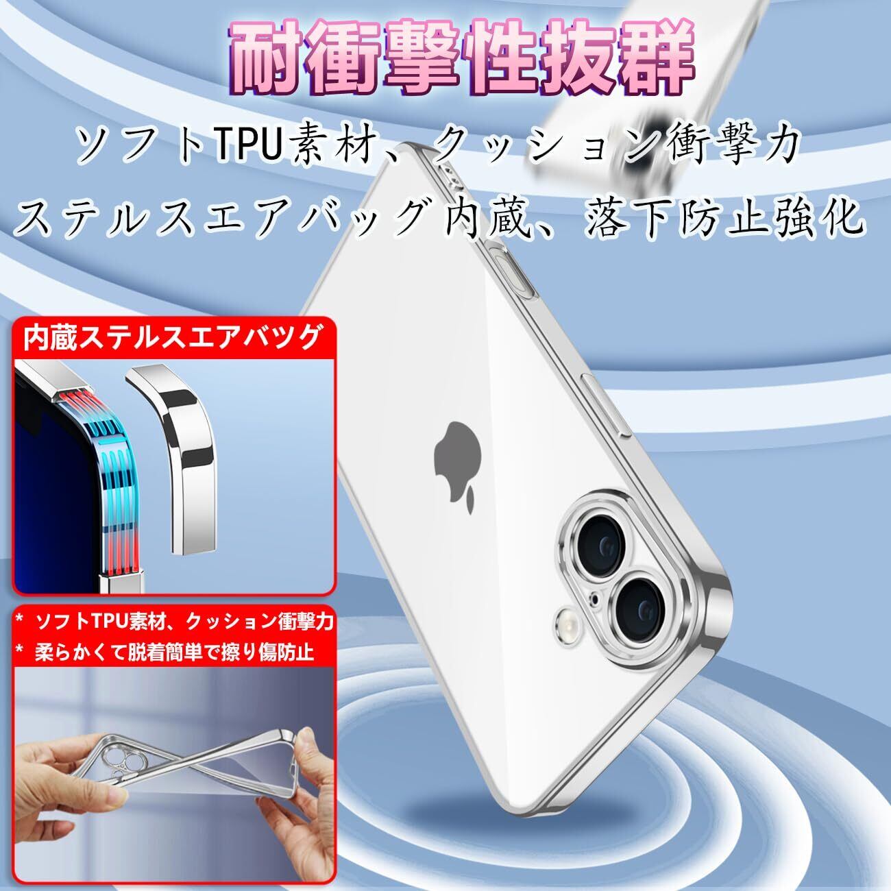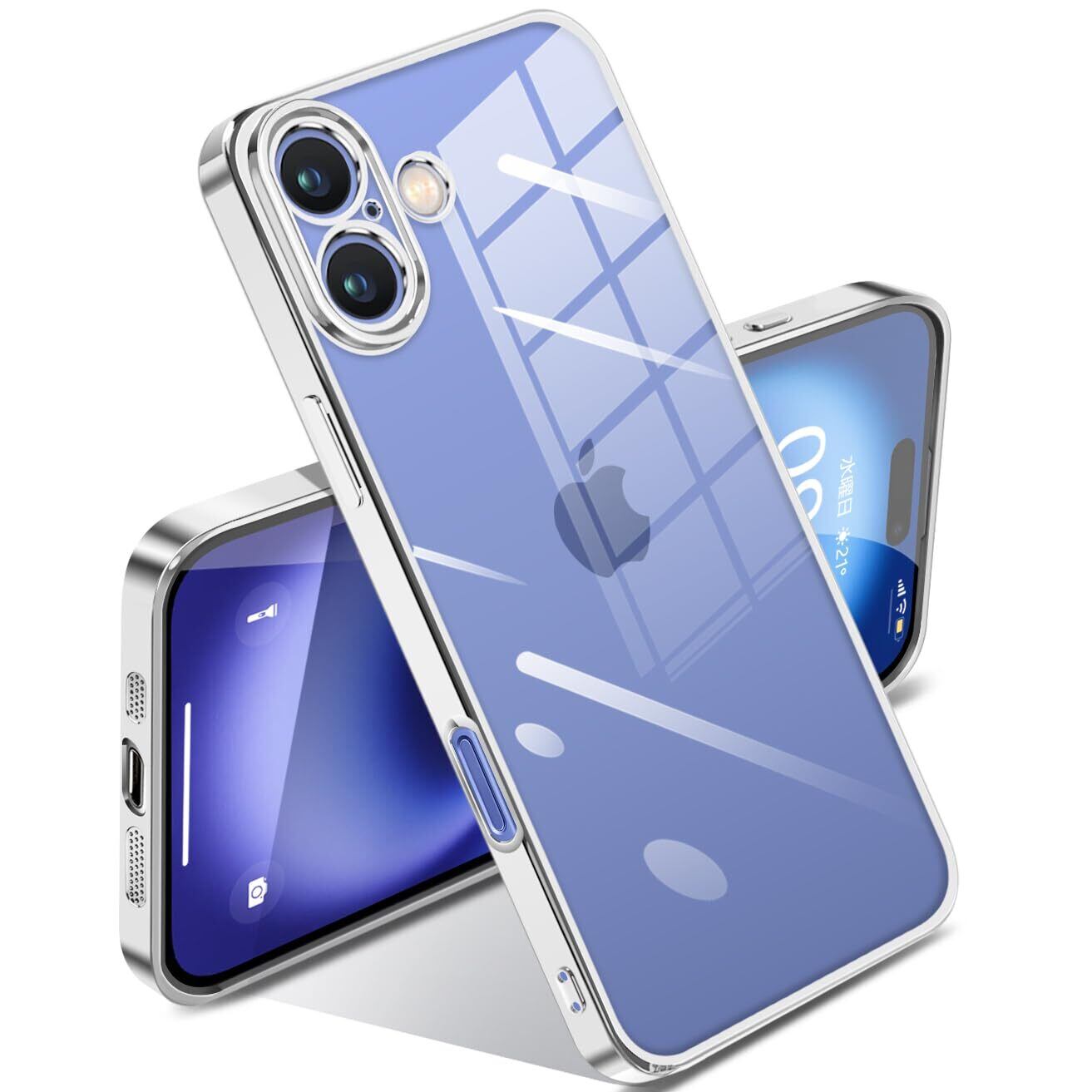 【特価商品】iPhone 16 用 ケース クリア 耐衝撃 アイフォン16 カバー 透明 メッキ加工 完全な保護 黄変防止 落下防止 ファッション 薄型 軽量 TPU 柔らかい ワイヤレス充電 人気 保護カバー(シルバー)
