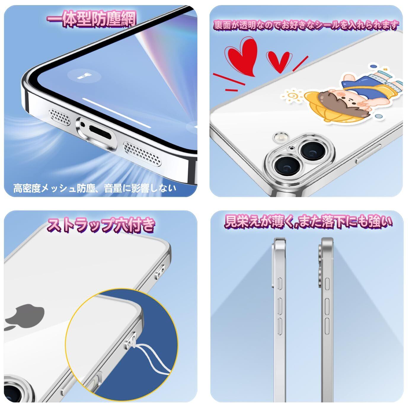 iPhone 16 用 ケース クリア 耐衝撃 アイフォン16 カバー 透明 メッキ加工 完全な保護 黄変防止 落下防止 ファッション 薄型 軽量 TPU 柔らかい ワイヤレス充電 人気 保護カバー(シルバー)