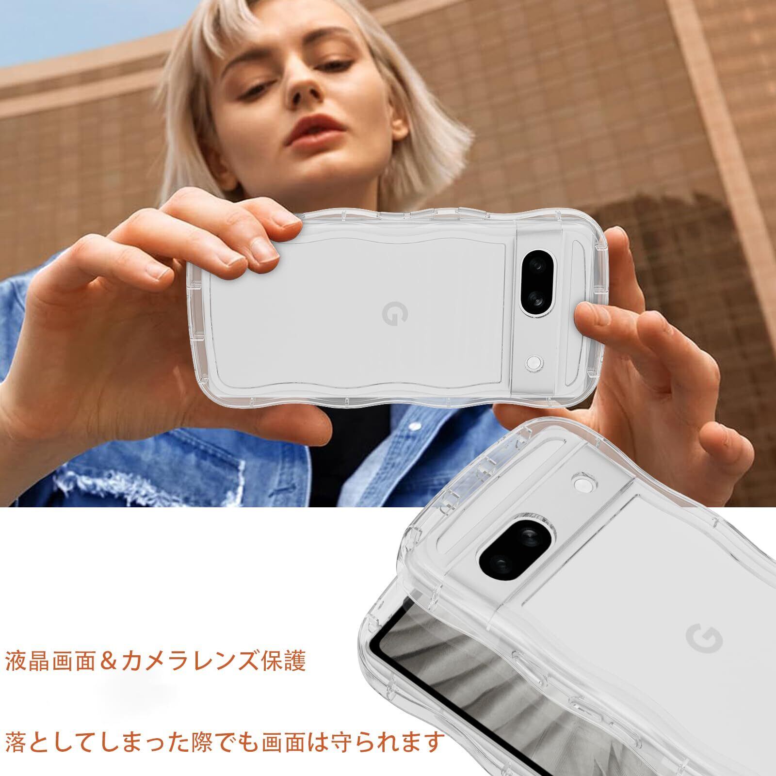QAZWERT Google Pixel 7A ケース クリア ウェーブ ピクセル 7a ソフト TPU うねうね 透明 ケース マツと感 人気 韓国 耐衝撃 なみなみ カバー 滑り止め 薄型 軽量 おしゃれ 黄ばみなし アクスタが入る スマホケース pixel7A おしゃれ 落下防止 ワイヤレス充電対応 ストラップホール付き グーグルピクセル7a なみなみ カバー(7Aクリア)