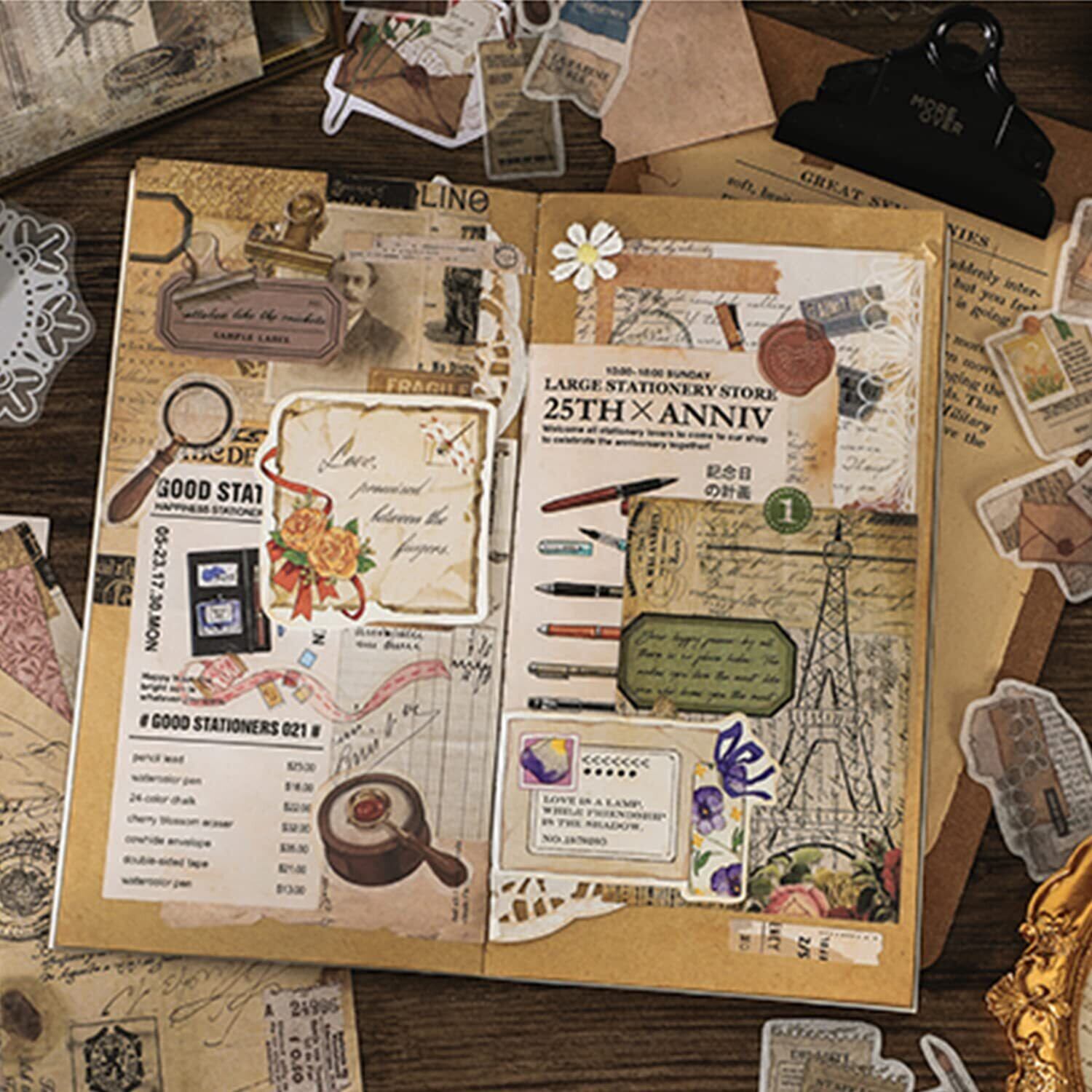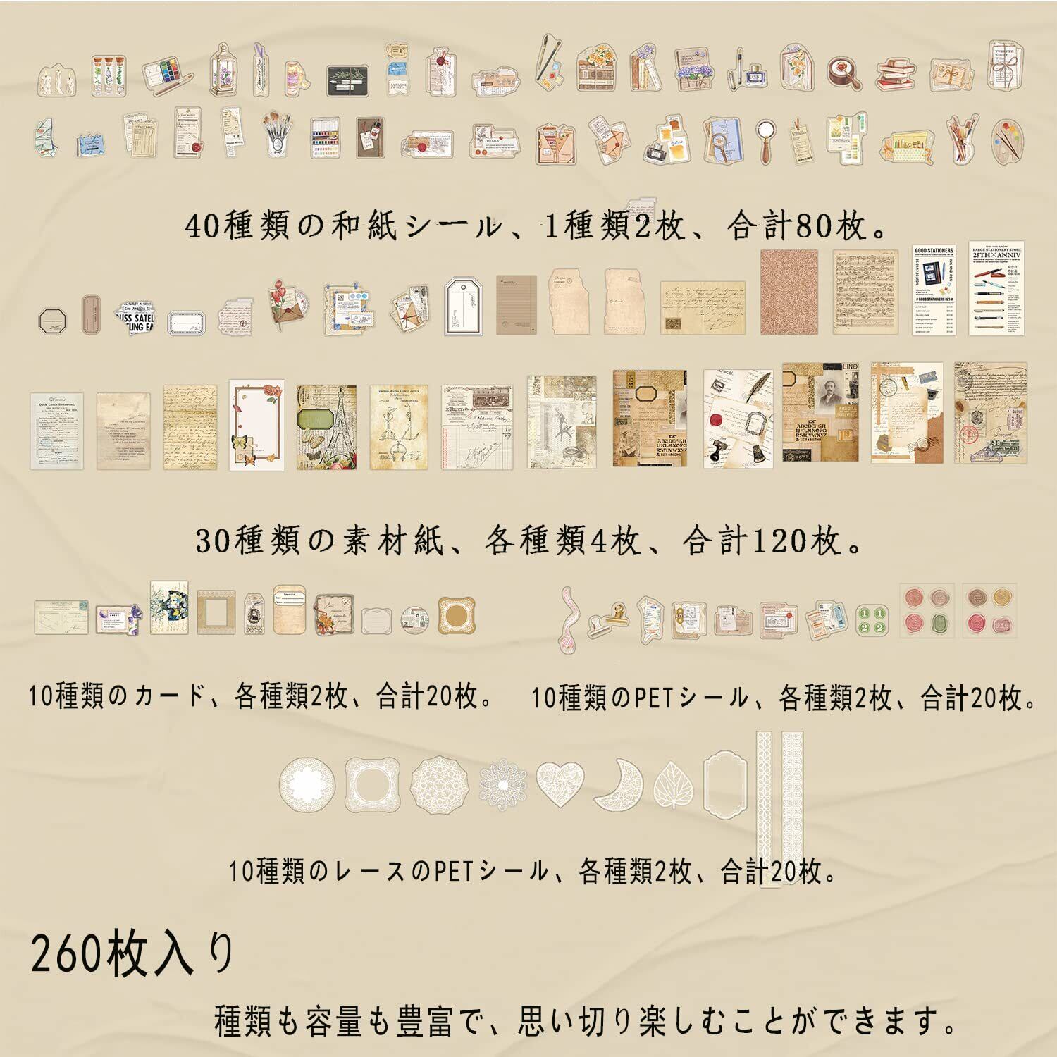 YOVOY 260枚 大容量 コラージュ 素材 シール ステッカー 手帳素材パック レトロ アンティーク フレークシールステッカー デザインペーパー 素材紙 和紙 メモ用紙 カード 紙モノ ノート スケジュール カレンダー (文房)