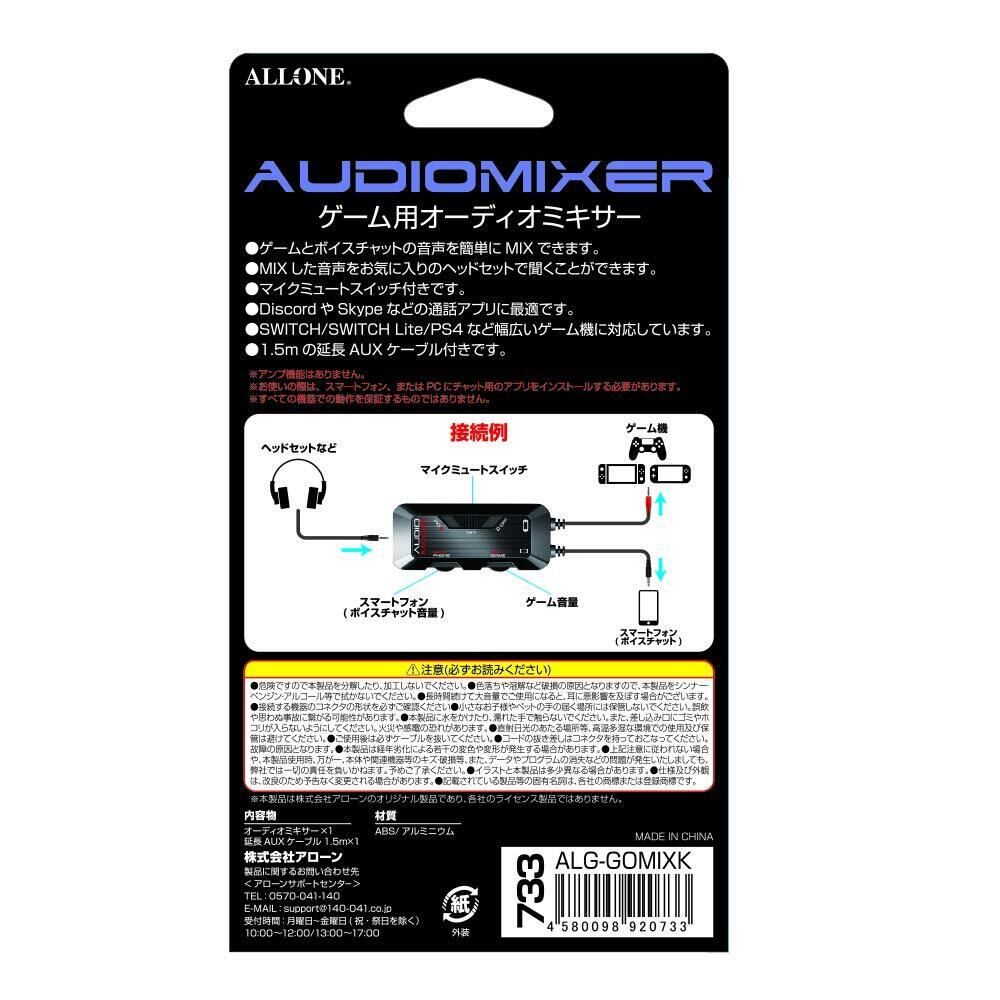 【在庫処分】アローン(Allone) ゲーム用オーディオミキサー BK 8×1.5×14cm Switch/SwitchLite/PS4対応 ブラック ミュート機能付 簡単接続 コンパクトサイズ ALG-GOMIXK
