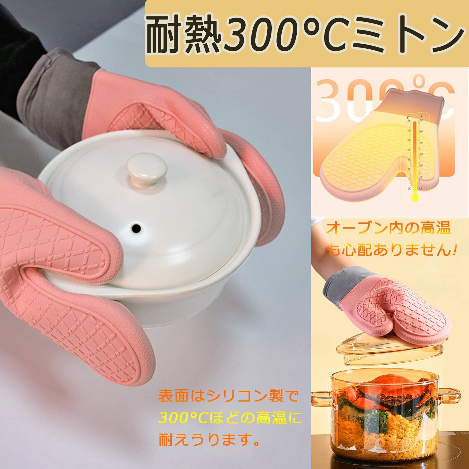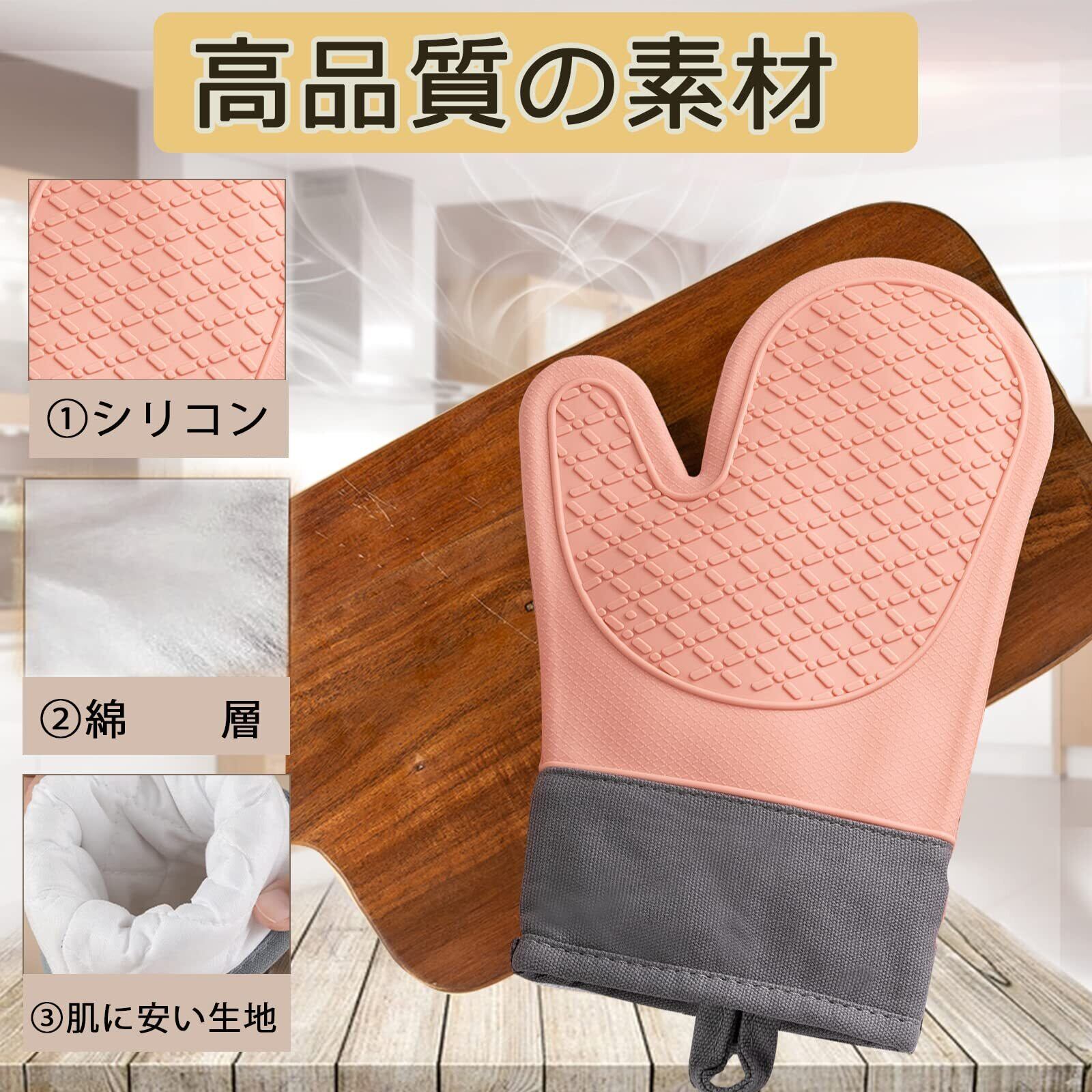 Senteria 耐熱ミトン 鍋つかみ オーブングローブ 300℃耐熱 ピンク シリコン製 やけど防止 滑り止め 長持ち おしゃれ キッチン手袋 電子レンジ クッキング用 ケーキを焼く バーベキュー用 鍋料理 両手セット (ミトン+コースター)