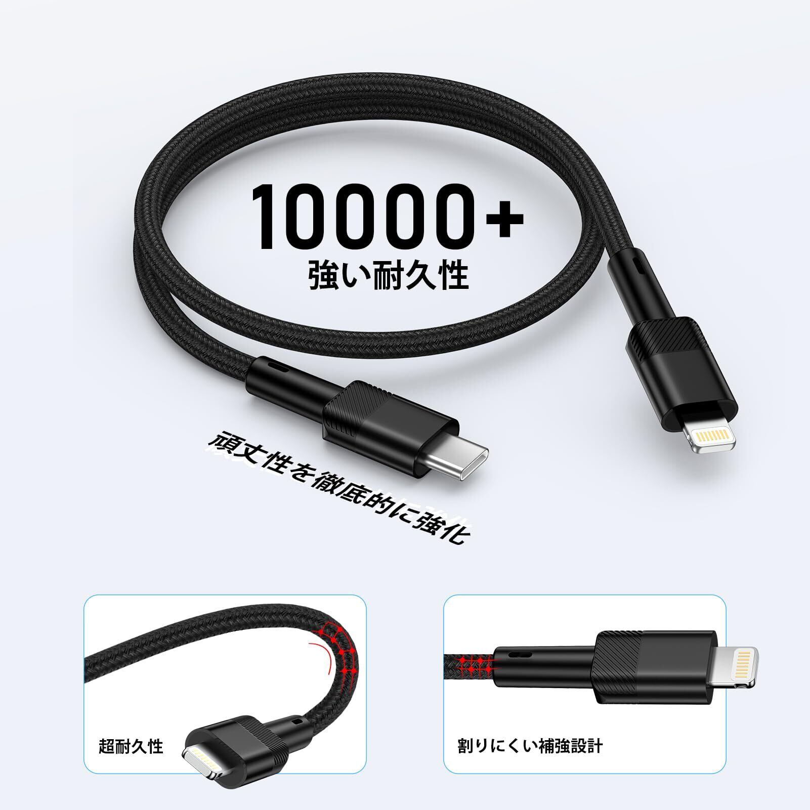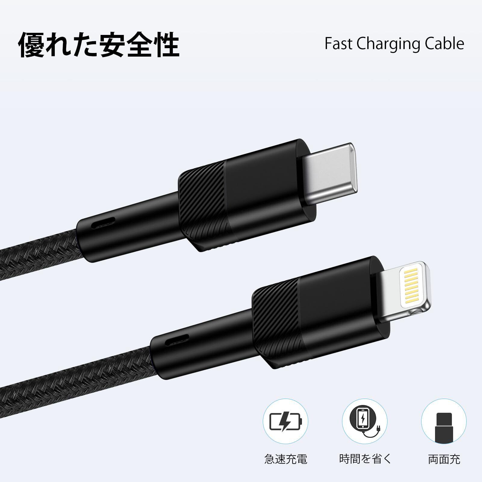 【品質】12ヶ月交換、フレンドリーなカスタマーサービス。私たちの0.3mライトニングケーブルは、信頼性と耐久性のある素材で作られています。今後問題が発生した場合は、お気軽にお問い合わせください。