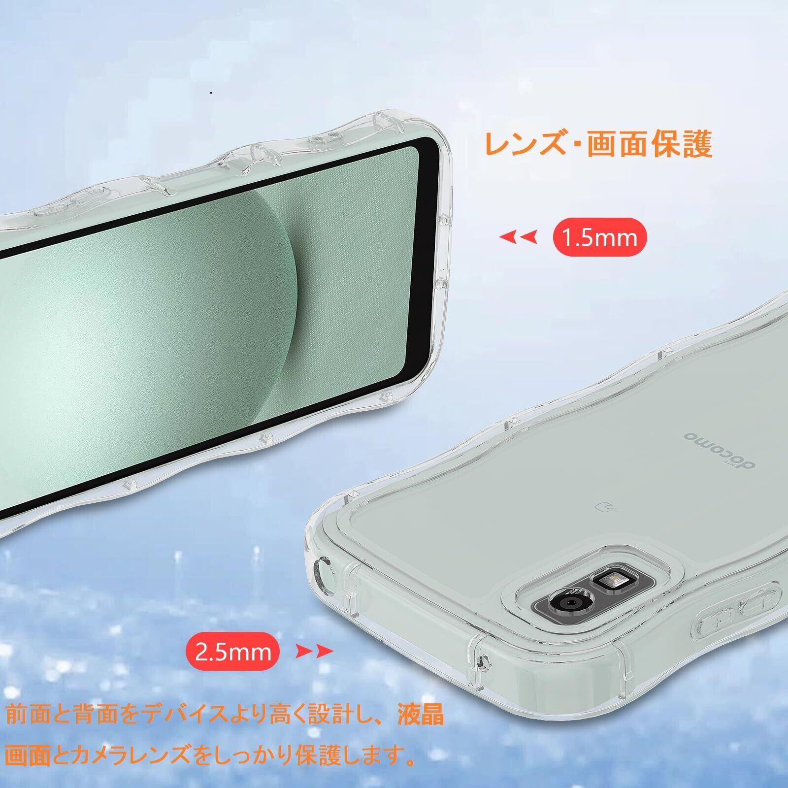 【レンズ・画面保護】前面と背面をデバイスより高く設計し、液晶画面とカメラレンズをしっかり保護します。ケースの縁は、画面やレンズよりも高く設計されています。落下時の衝撃を最大限に吸収することができ、全方位から本体をしっかり守ります。
