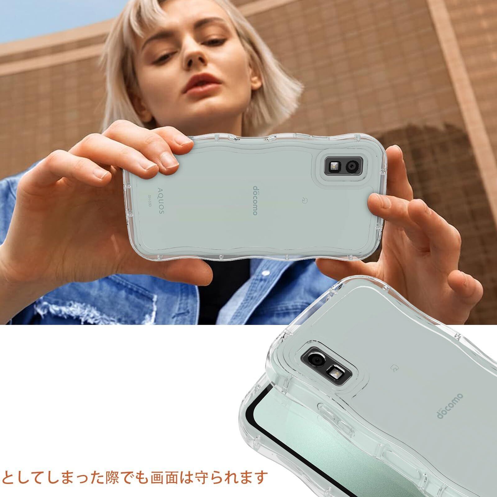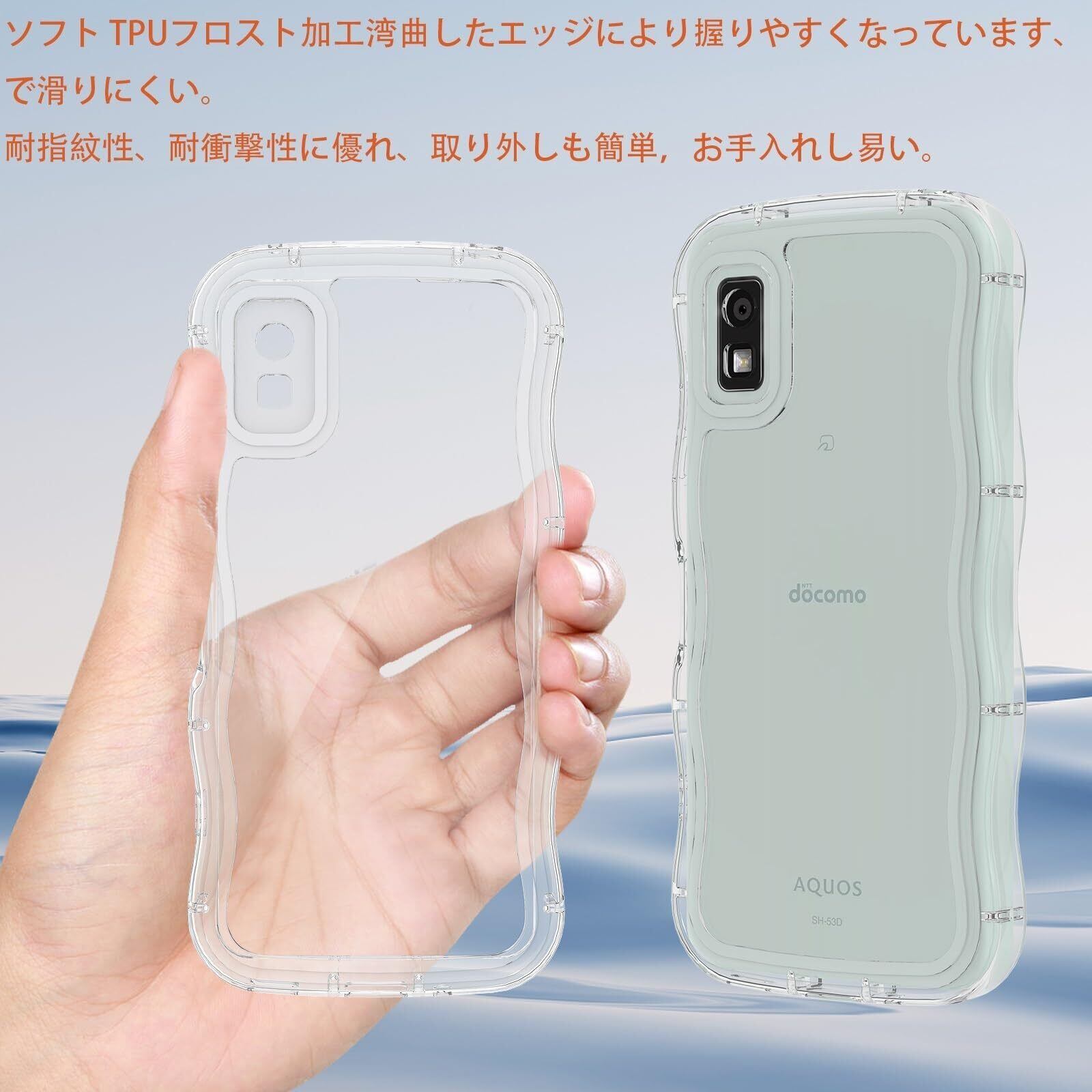 【新春セール】HILEGENER AQUOS Wish 3 かわいい ケース うねうね 耐衝撃 アクオス ウィッシュ3 SH-53D 5.7インチ用滑り止め スマホケースウェーブ デザイン 手にフィット スマホカバー 韓国 可愛い クリア ソフトTPUカバー 波状エッジ ソフトシェル ケース 人気 落下防止 全面保護 ワイヤレス充電対応 ストラップホール付き(Wish3-純透明)