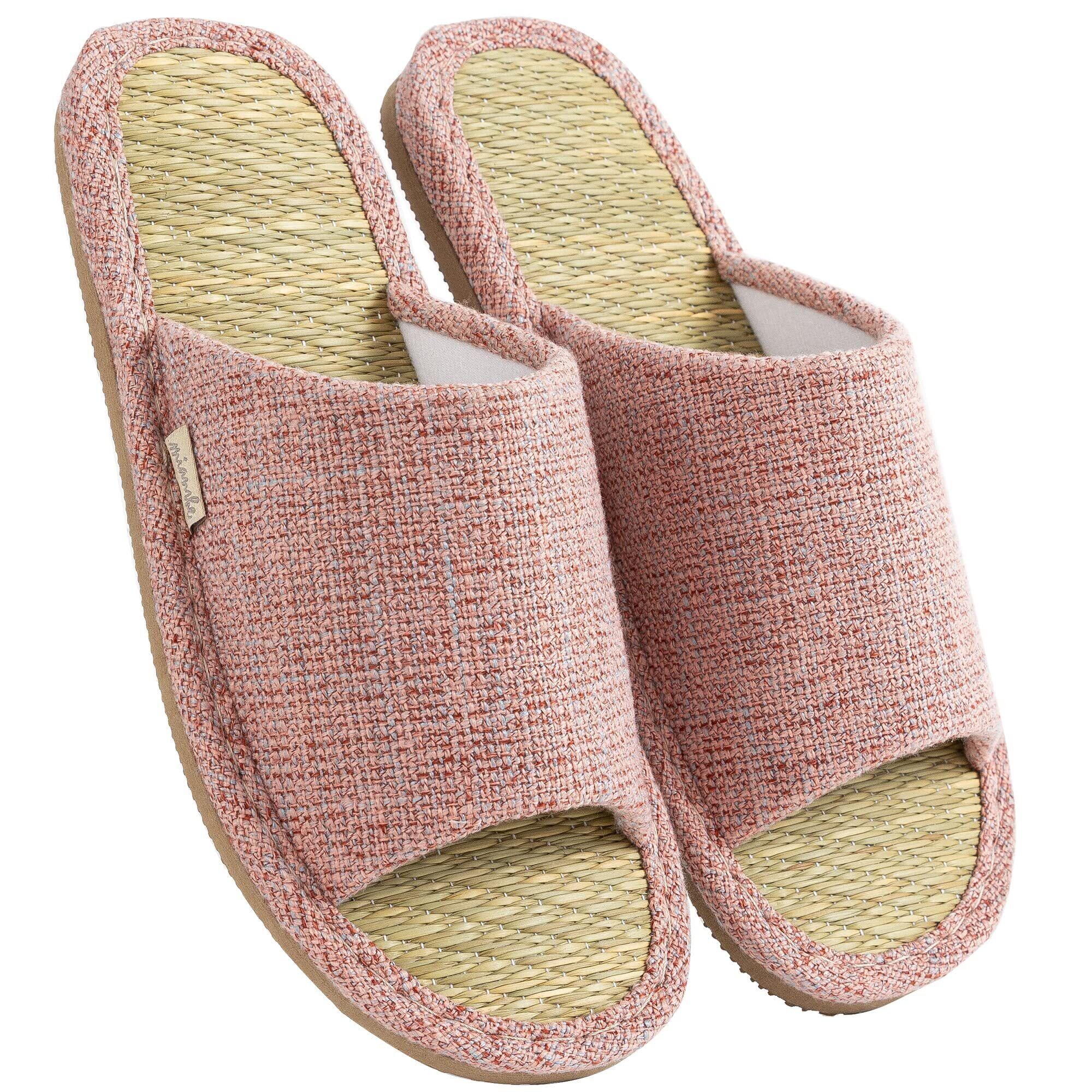 [mianshe] スリッパ い草 ルームシューズ 春夏 室内 リネン 亜麻 男女兼用 涼しい 滑り止め むれない 室内はき 軽量 前開き 無地 井草
