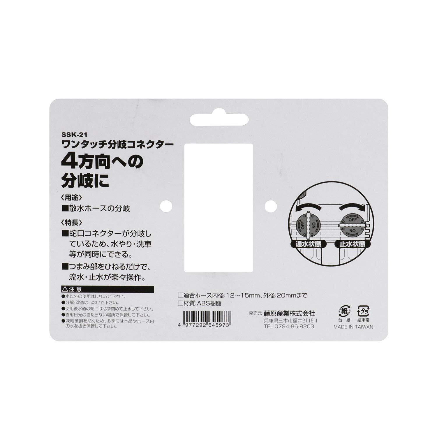 セフティー3(Safety-3) ワンタッチ 蛇口 ホース分岐コネクター 4方向 10~15mm内径対応 中間コック付 SSK-21