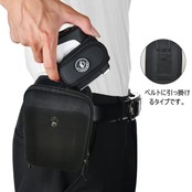 裏面のナイロン素材ストラップとカラビナ付き、ベルトとゴルフバッグにかけて持ち運びに便利。