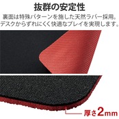 ■ 裏面はグリップ性を高める特殊パターンを施した天然ラバーを使用し、デスクからずれにくく、高い安定性で快適にプレイすることができます。