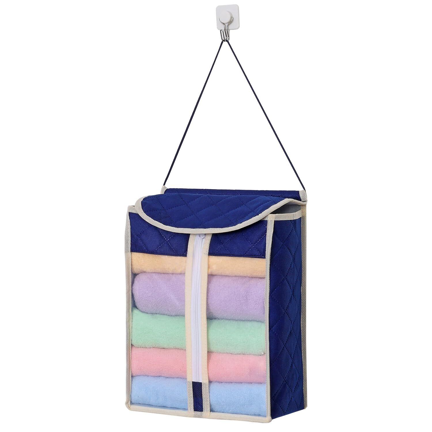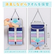 【商品仕様】:サイズ/約幅24×奥行11×33cm、カラー/ネイビー、内容/1枚、収納目安/タオル約6~8枚、材質/[三層生地]表裏面:ポリプロピレン、中材:ポリエステル・指定外繊維(デオメタフィD)、[透明窓]ポリエチレン、[底板]ポリエチレン