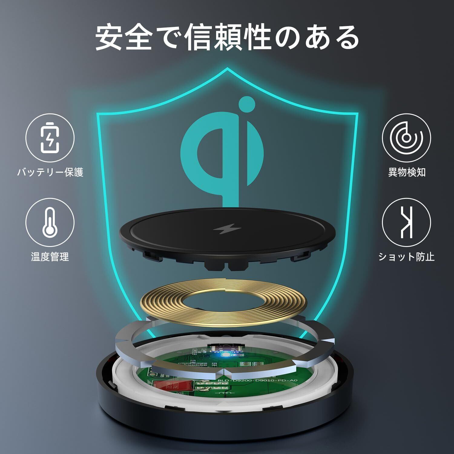 【高速充電と安全保護】最大出力は15Wです。iPhoneの充電時には、iPhone自体の制限により出力は7.5Wになります。この磁気ワイヤレス充電器は、独自のスマート保護技術を搭載しています。温度制御、過充電保護、過電流保護、過熱保護、異物検出およびショートカット保護などの安全対策を採用しています。高速充電時には、わずかな熱が発生しますが、充電量が増加し、充電速度が安定するにつれて、熱量は徐々に減少します。この製品は安心してご利用いただけます。