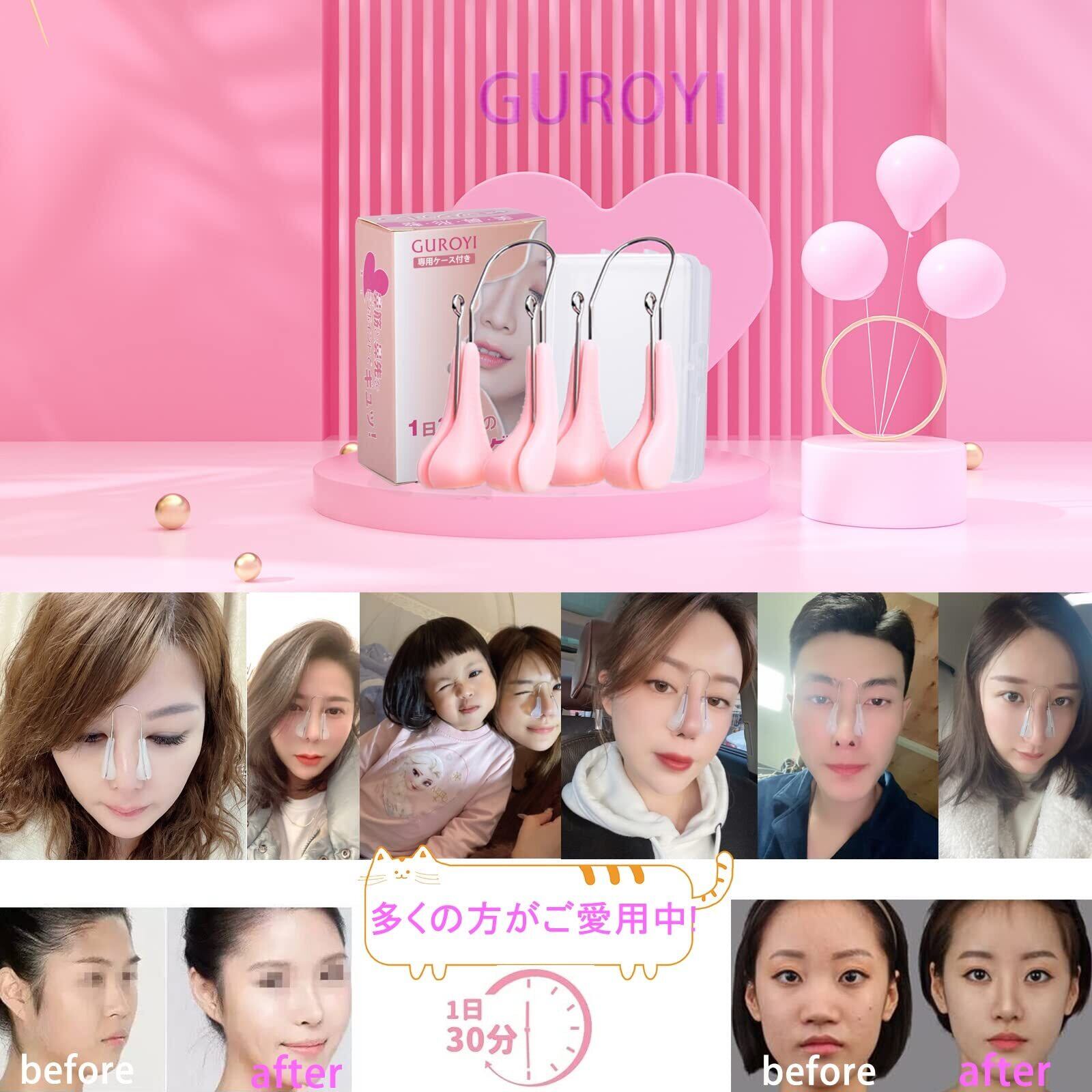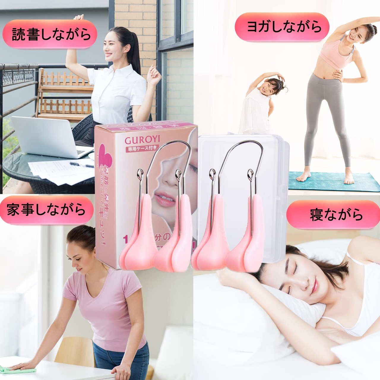GUROYI ノーズクリップ 鼻クリップ【収納ケース付き】鼻高 鼻痩せ 鼻小さく に適用 ・透明で柔らかいシリカゲル・チタンアーム使用 男女共有 専用ケース付き (ピンク 2個セット+Case)
