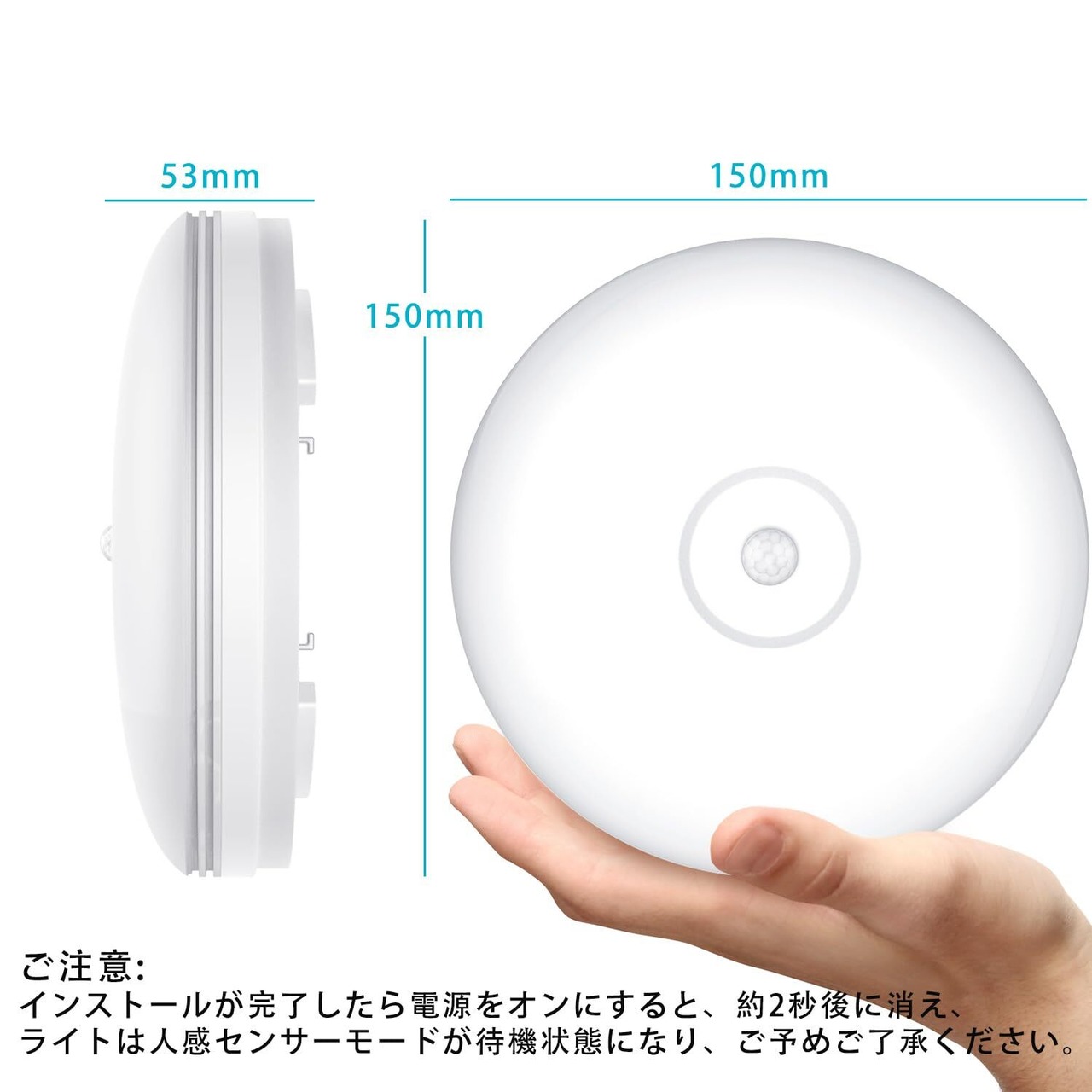 小型シーリングライトのサイズは直径約150mm、厚さ53mmなので、コンパクトで設置が簡単です。【ご注意:スイッチとリモコンは付属されていません。 】
