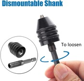 【適用設備】ハンマードリル、電動ドリル、充電式ドリル、インパクトドライバーに適用するドリルチャックアダプター(六角シャンクをドリルチャックに変換するアタッチメント)です。充電ドリルドライバー・インパクトドライバーに装着して、丸軸先端パーツを使っての作業