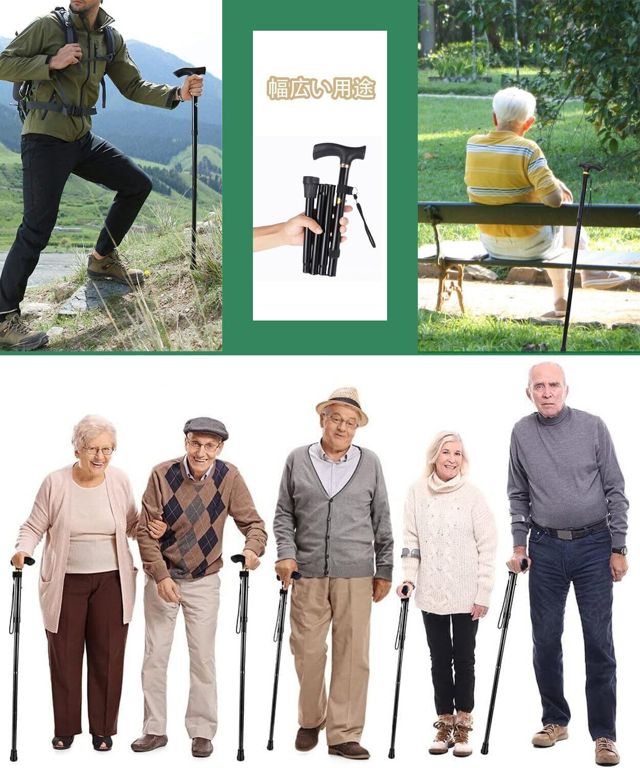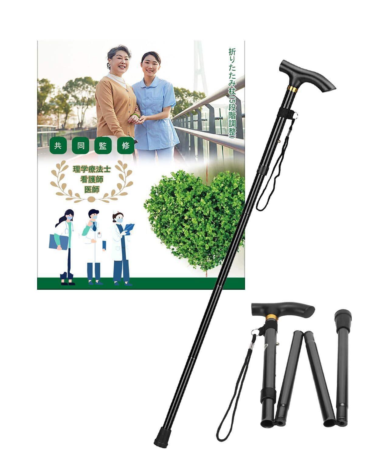 BTtime 折りたたみ杖 【理学療法士&医師&看護師監修】 折りたたみ ホルダー 伸縮式杖 歩行支援 アルミニウム製 5段階調整 超軽量 携帯に便利 男女兼用 登山用 介護用 【検査機関の強度試験に合格】85-95cm