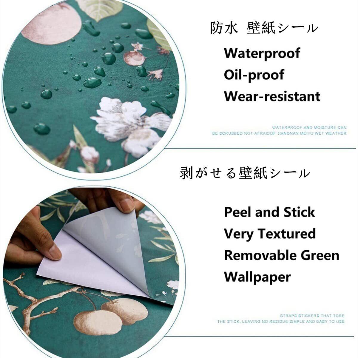 Homya 壁紙 シール 剥がせる リメイクシート 防水シール 45cm*10m リフォームシート 防カビ カッティングシート のり付き 葉柄 緑