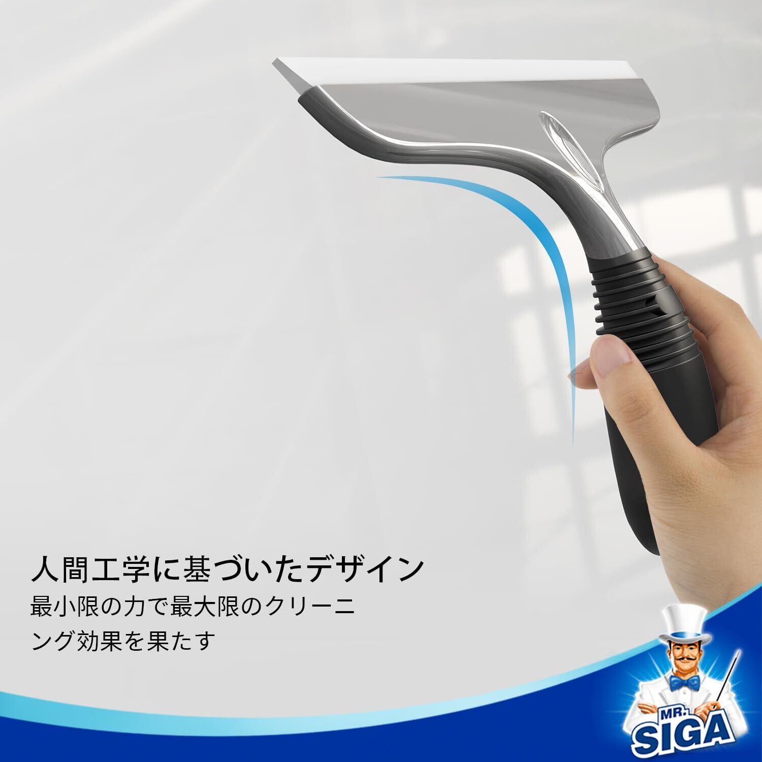 人間工学に基づくデザインで、跡が残らない:人間工学に基づいて作られた、MR.SIGA のプロ用スクイージーなら、最少の労力で最大のお掃除効果が得られます。柔軟で丈夫なシリコン製のヘッドにより、簡単に石けんカス、水滴、水垢を除去できて、跡はつきません。お掃除したい面に水と洗浄剤をつけて数回拭うだけで、新品のような輝きが戻り、跡は一切残りません。軽量なデザインだから、すぐに腕が疲れてしまうこともありません。