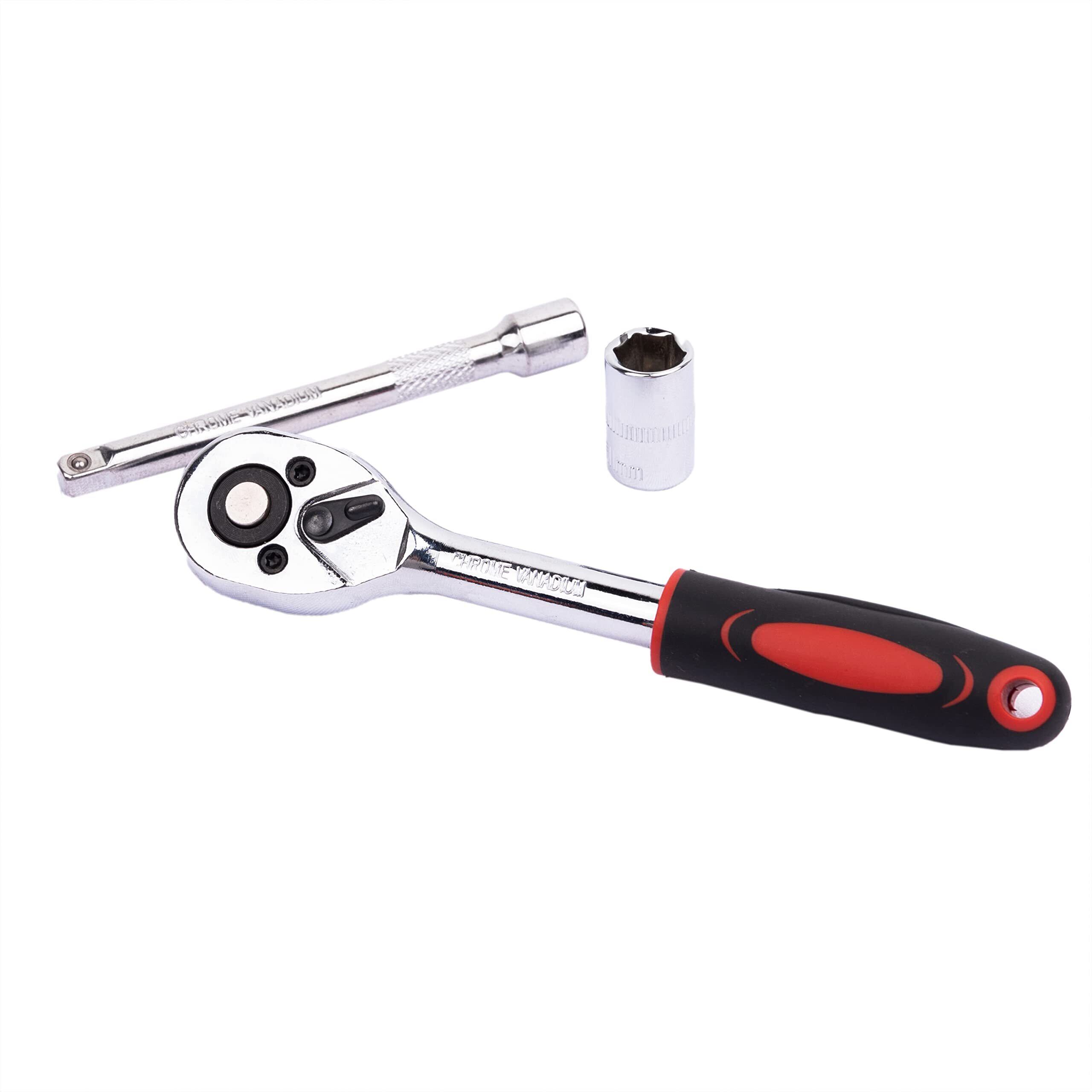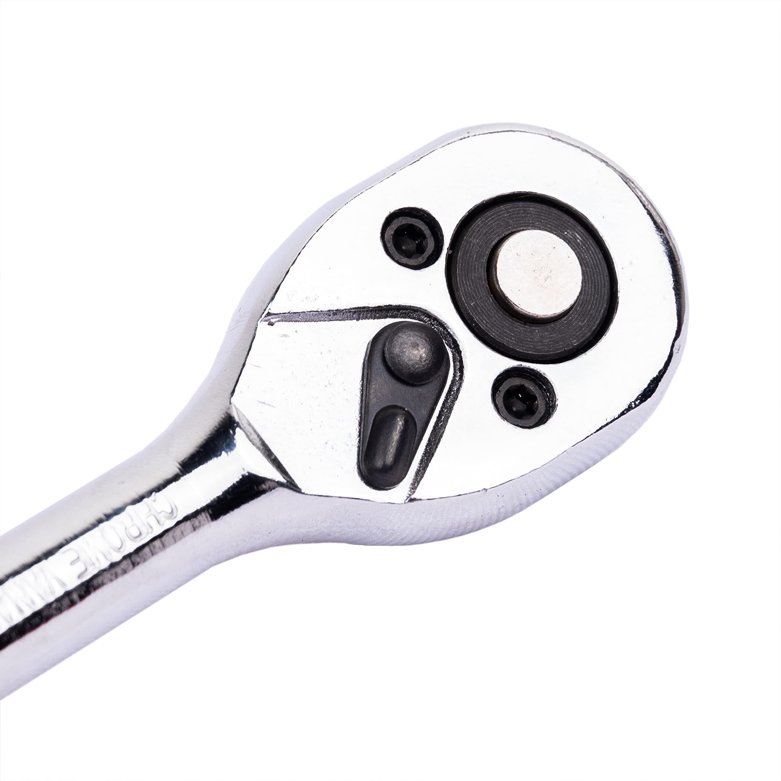 【セット内容】差込角6.3mm(1/4")、4、5、6、7、8、9、10、11、12、13mm、1個クイックリリースラチェットハンドル、1個75mmエクステンションバー。