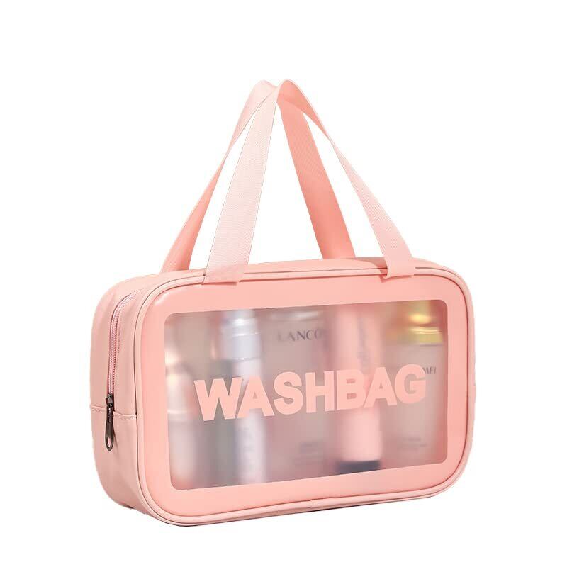 ビニールポーチ クリアポーチ WiViVi 防水 トラベルポーチ トラベルセット 温泉バッグ 半透明なPVC素材 化粧品 ポーチ メイクポーチ スパバッグ メイク収納 大容量 お風呂ポーチ (ピンク ラージ)
