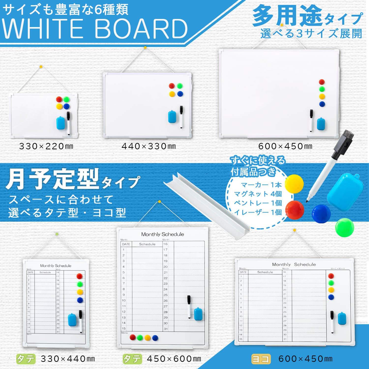 サンケーキコム ホワイトボード 樹脂枠 月予定 タテ型 450mm×600mm WB-6045-MT