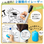着脱式ペントレー、マーカーペン(黒)、イレーザー(マグネット付き)、マグネット4個を付属しているので、設置後すぐに使用することができる。
