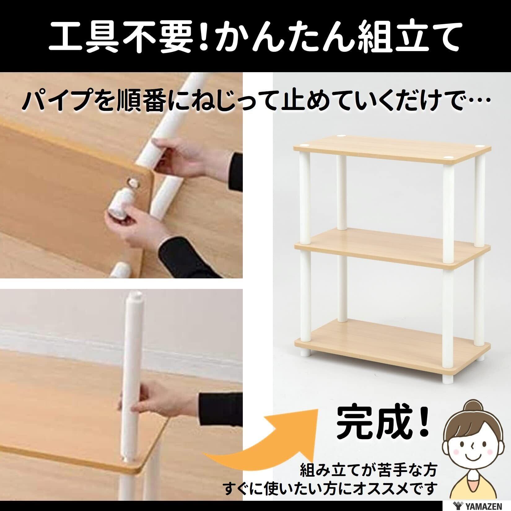 ●本体サイズ:幅27×奥行27×高さ76cm●全体耐荷重:9kg(棚板1枚あたりの耐荷重:3kg)●材質:支柱/ポリプロピレン、甲板の表面材/プリント紙化粧パーティクルボード●お客様組立品(かんたん組立)●東証プライム(株)山善で扱うすべての山善商品は、自社もしくは第三者機関において、JIS規格に基づいた品質試験を行っております。
