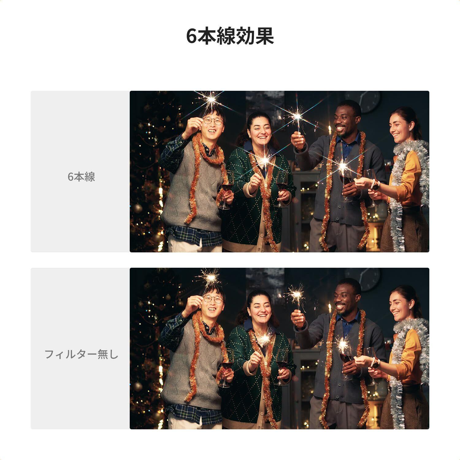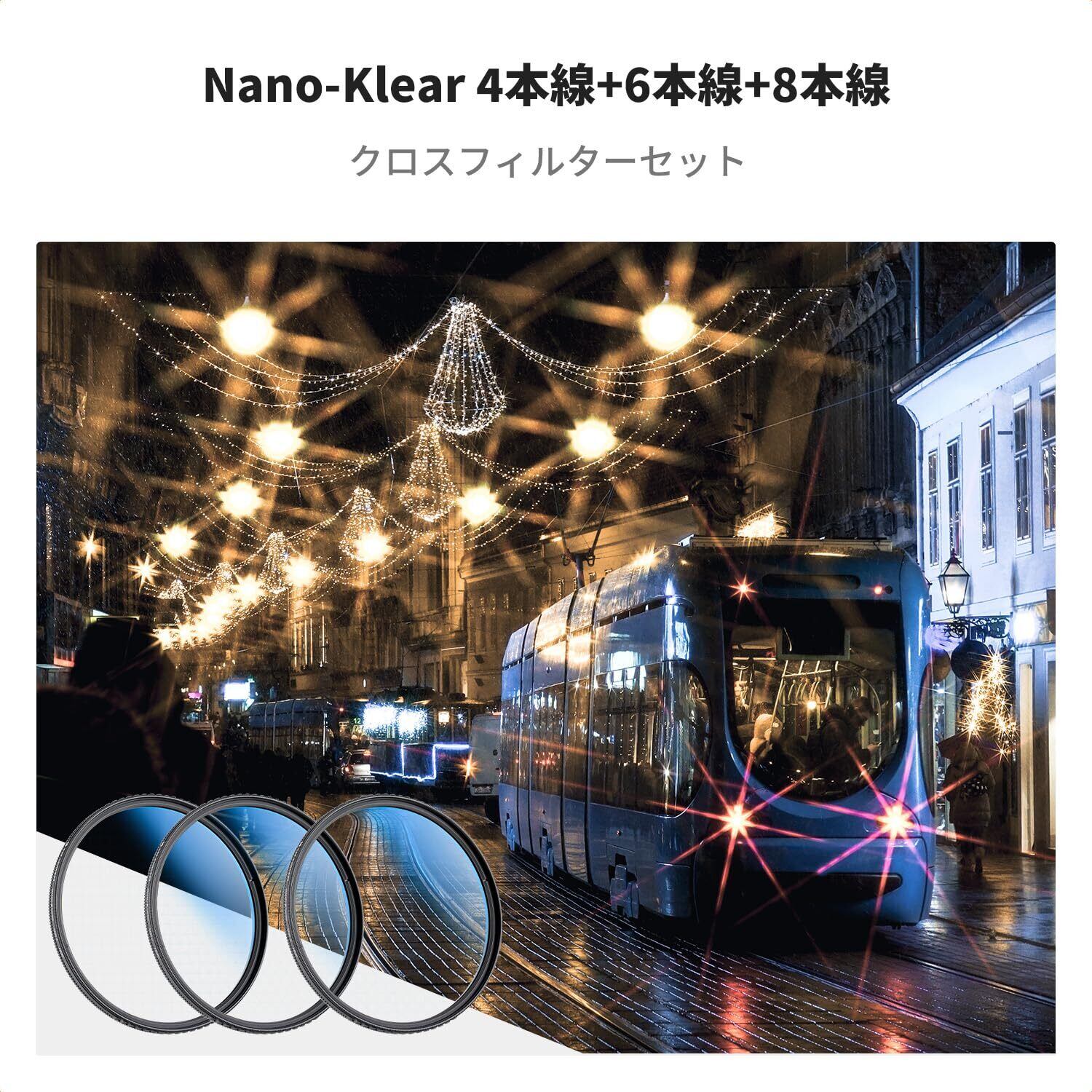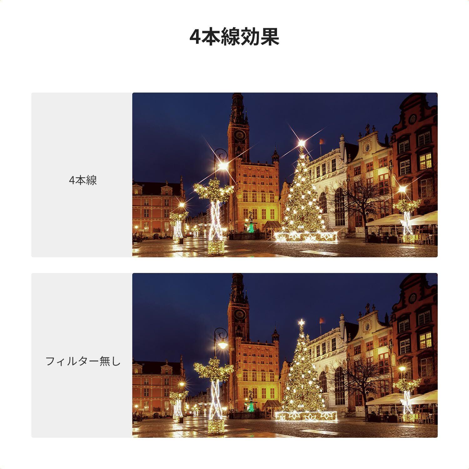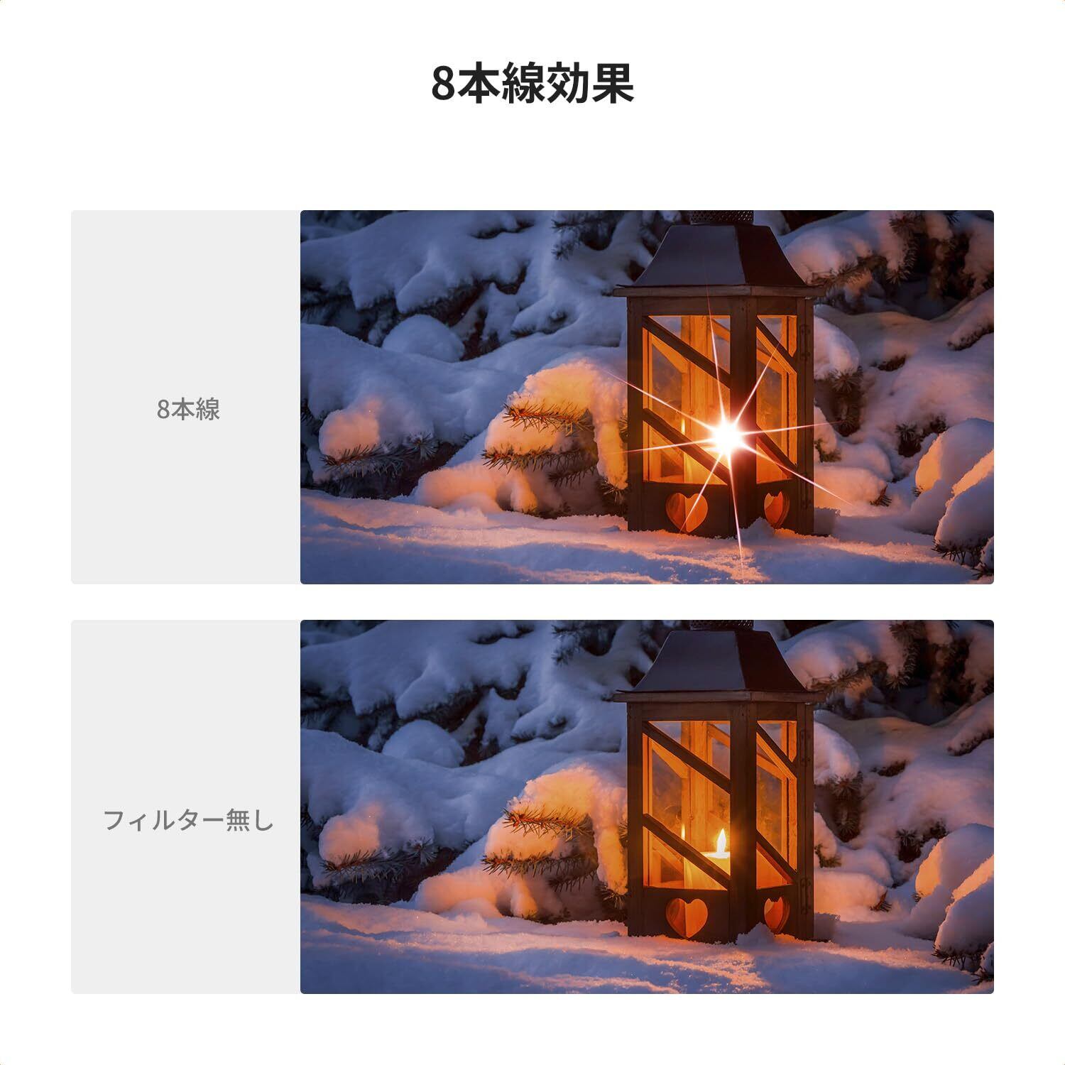 ✨【光学ガラス・クロス効果】✨クロスフィルターは高品質の光学ガラスで作られ、光の分散と歪みを効果的に軽減し、キラキラな光の効果をできます。夜景撮影や水面の輝き、イルミネーションなどシーンに最適です。