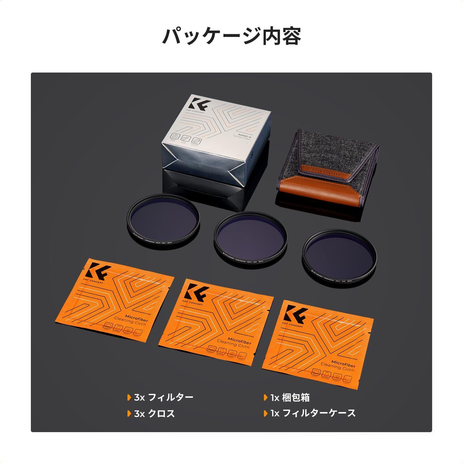 【在庫セール】K&F Concept 82mm クロスフィルター 4本+6本+8本 3点セット クロス効果 効果フィルター 18層コーティング 薄枠 3枚クリーニングクロス付属 夜景・イルミネーションに最適(NANO-K シリーズ)