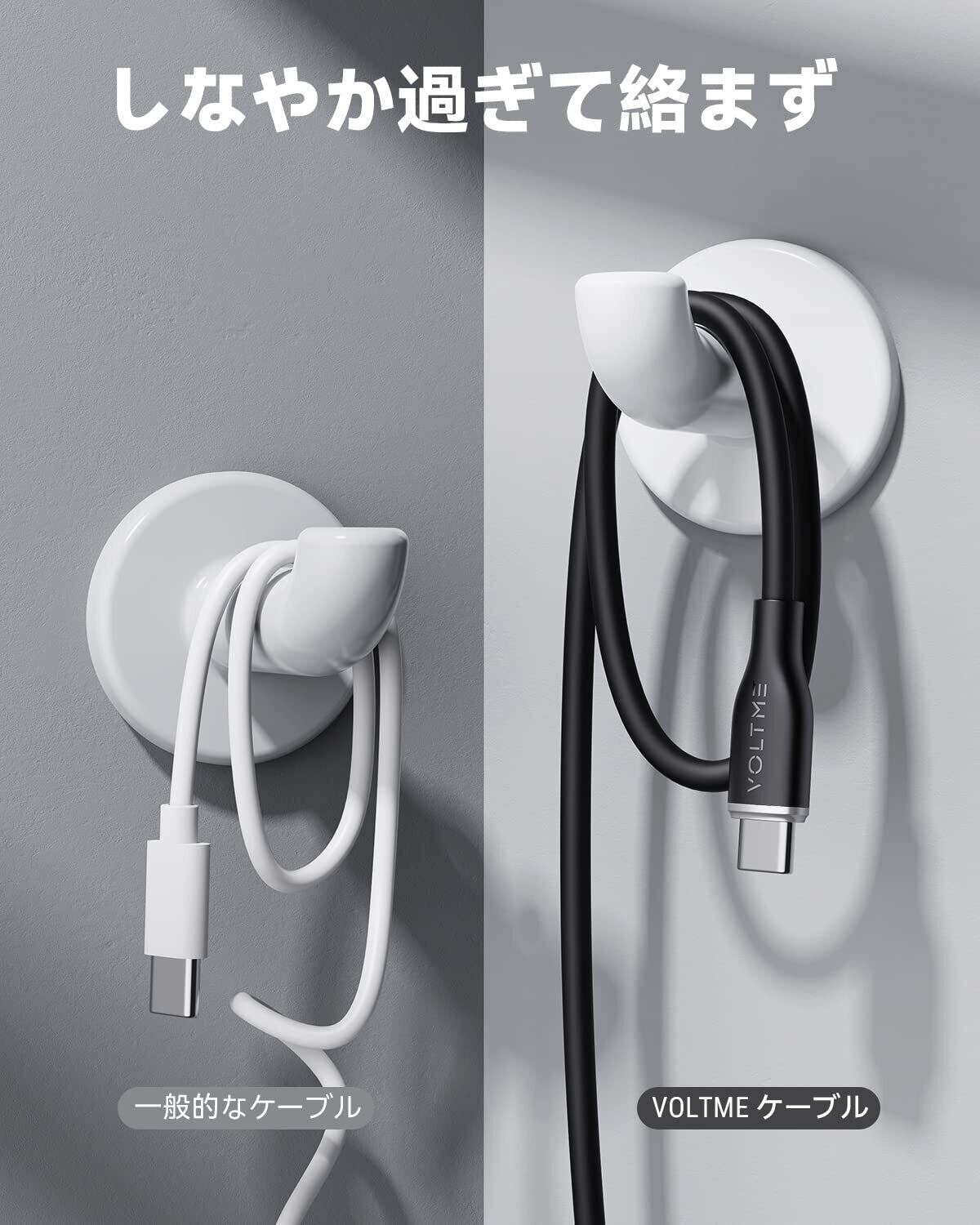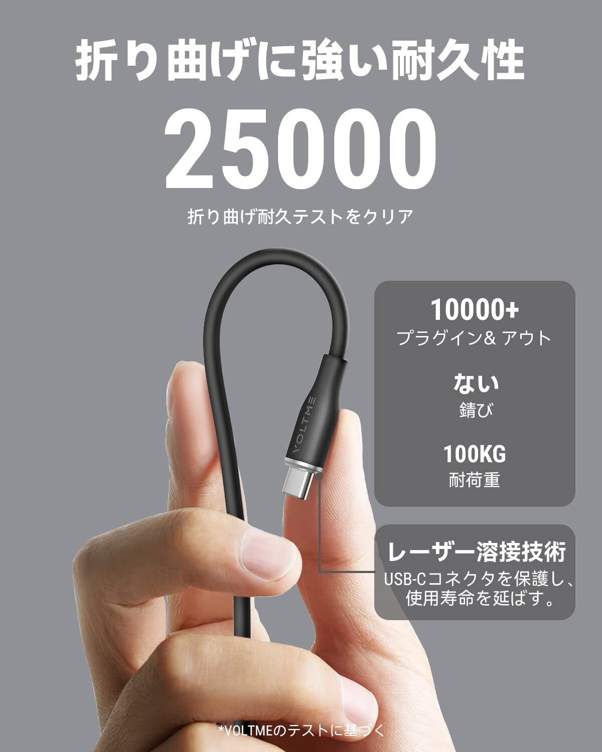 【丈夫かつ柔らかいシリコンusb ケーブル】外装にシリコン素材を使用したことで、従来のケーブルにはない柔らかい質感を実現し、カバンやポケットに入れても絡みにくいです。更に2,5000回の折り曲げテストを実施し、断線しにくく、長く利用できる高い耐久性のusb-c ケーブルです。