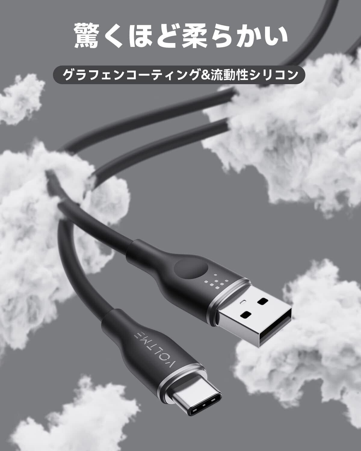 VOLTME USB Type C ケーブル 柔らかいシリコン製 絡まない 断線防止 タイプc 急速充電 QuickCharge3.0対応 Xperia/Galaxy/LG/iPad Pro/MacBook その他 Android(アンドロイド) 等 USB-C機器対応 在宅勤務支援 USB-A & USB-C ケーブル (1m ブラック)