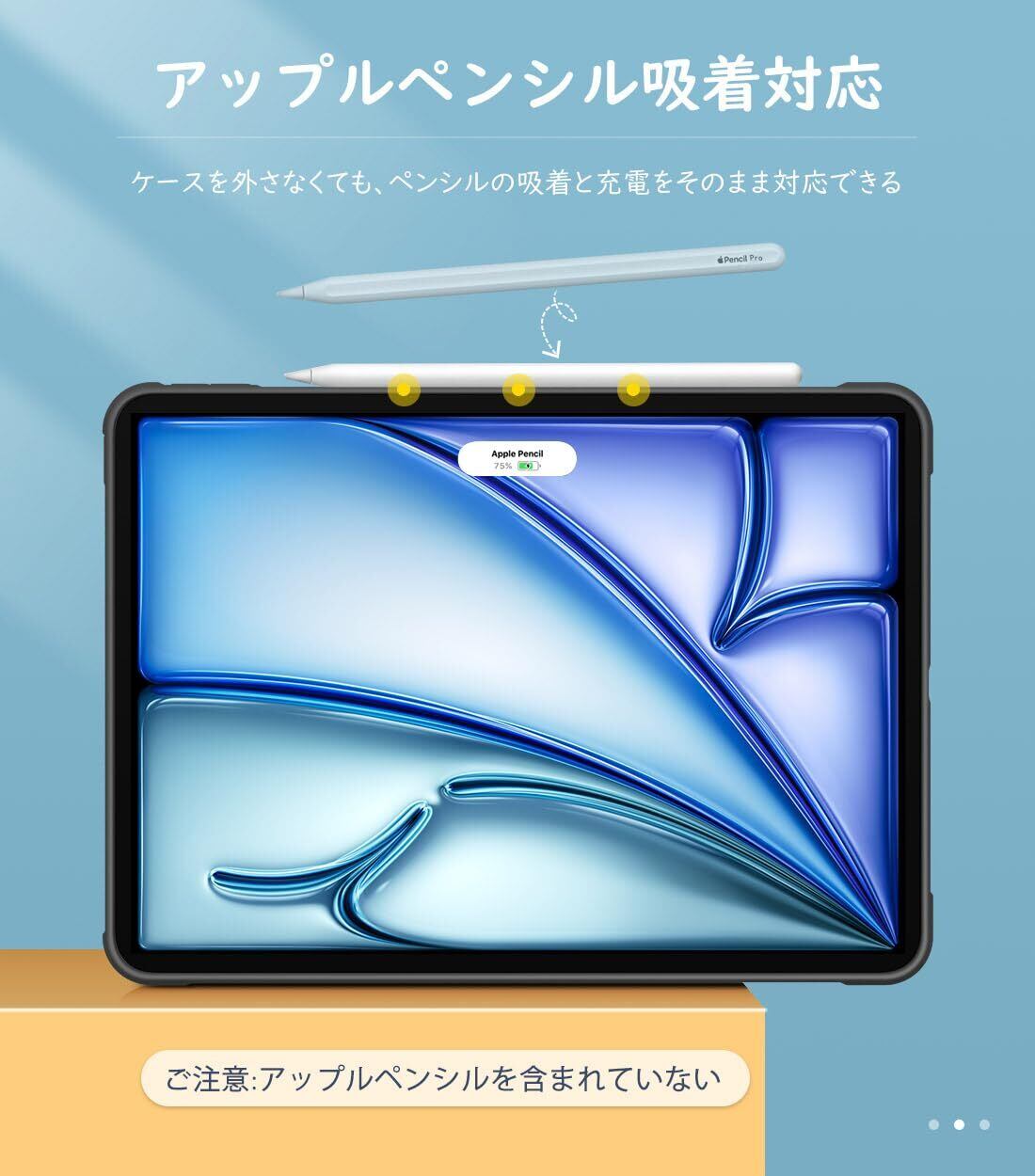 「適用機種」2025年発売のiPad Air 11インチ(M3)(モデル番号:A3266/A3267/A3270)、2024年発売のiPad Air 11インチ(M2)(モデル番号:A2902、A2903、A2904)、2022年発売のiPad Air 第5世代(モデル番号:A2591、A2589、A2588)と2020年発売のiPad Air 第4世代(モデル番号:A2316、A2324、A2325、A2072)10.9インチのみ対応できます。iPad 第11/10世代 10.9インチ、iPad Air 13インチ、又は他の機種に対応できません。ご購入になる前に、機種をご確認ください。