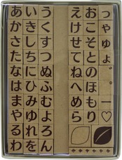 かわいいひらがな文字が53ヶと絵柄4ヶ入ったゴム印スタンプセットです。