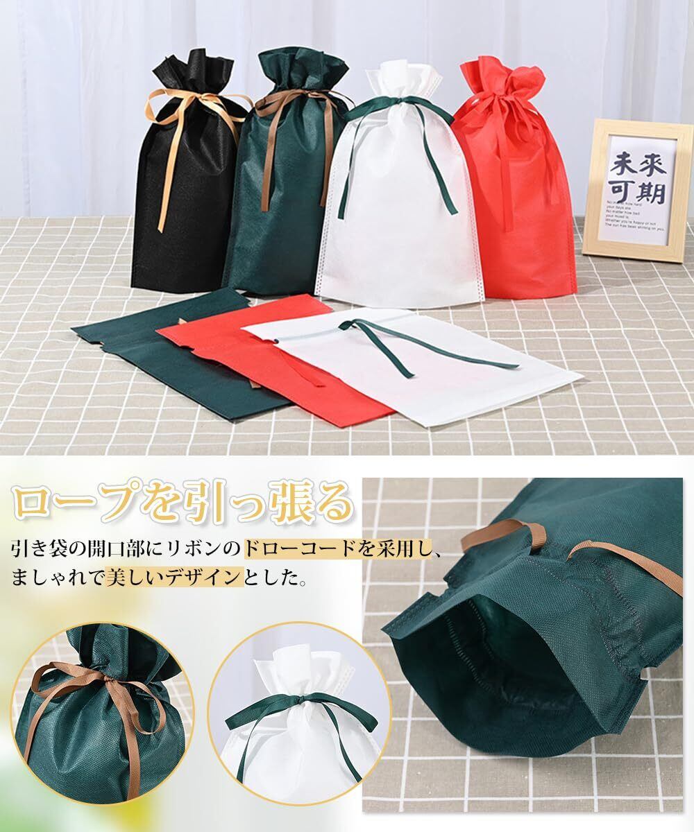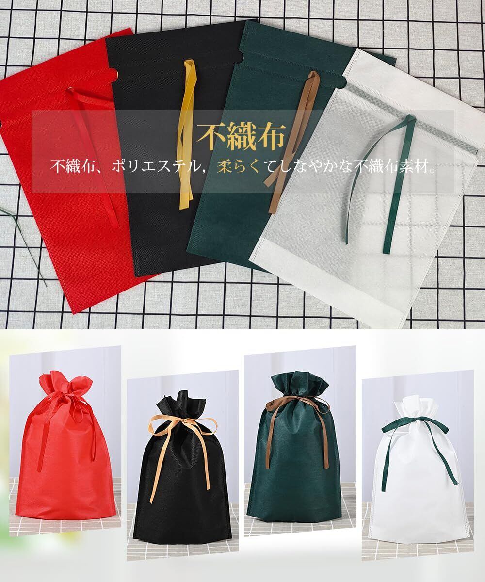 YFFSFDC 包む ギフト袋 ラッピング 袋 四色 プレゼント 袋 リボン付き不織布 バレンタイン プレゼント 巾着袋 おしゃれ ラッピングバッグ 誕生日 記念日 クリスマス 包装小分け プレゼント用 収納(8枚セット )