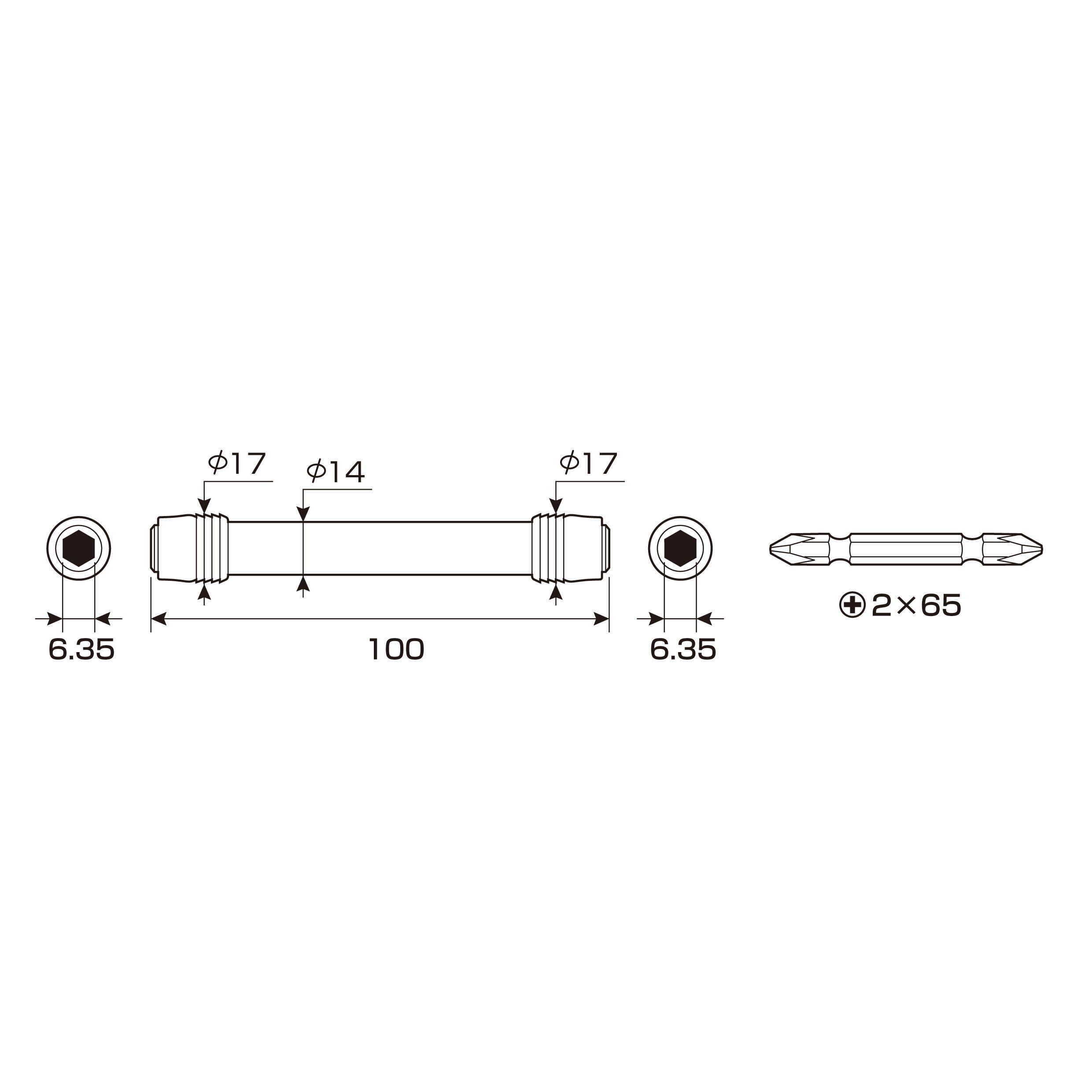●製品寸法:全長100mm(ビット未装着時)、シャフト最大径17mm