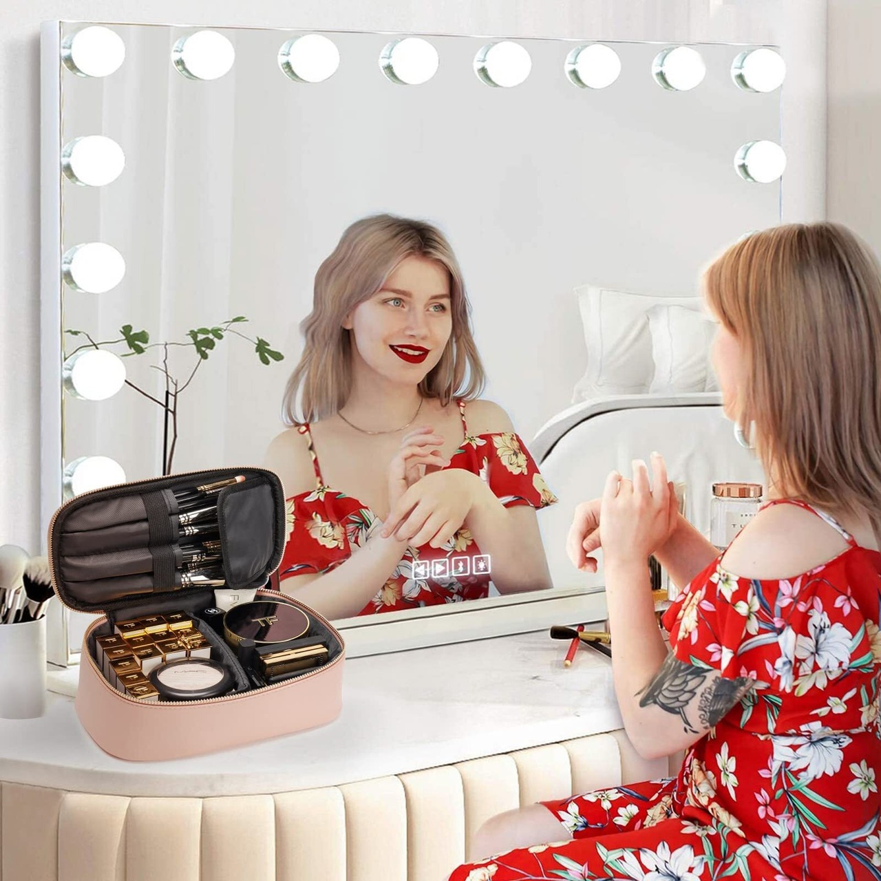 23 x 13 x 9.5 cmのパーフェクトサイズ、バッグ全身はスポンジを入られて、あなたの大事な化粧品をちゃんと守る。デザインから品質まで完璧な物です。プレゼント最適。