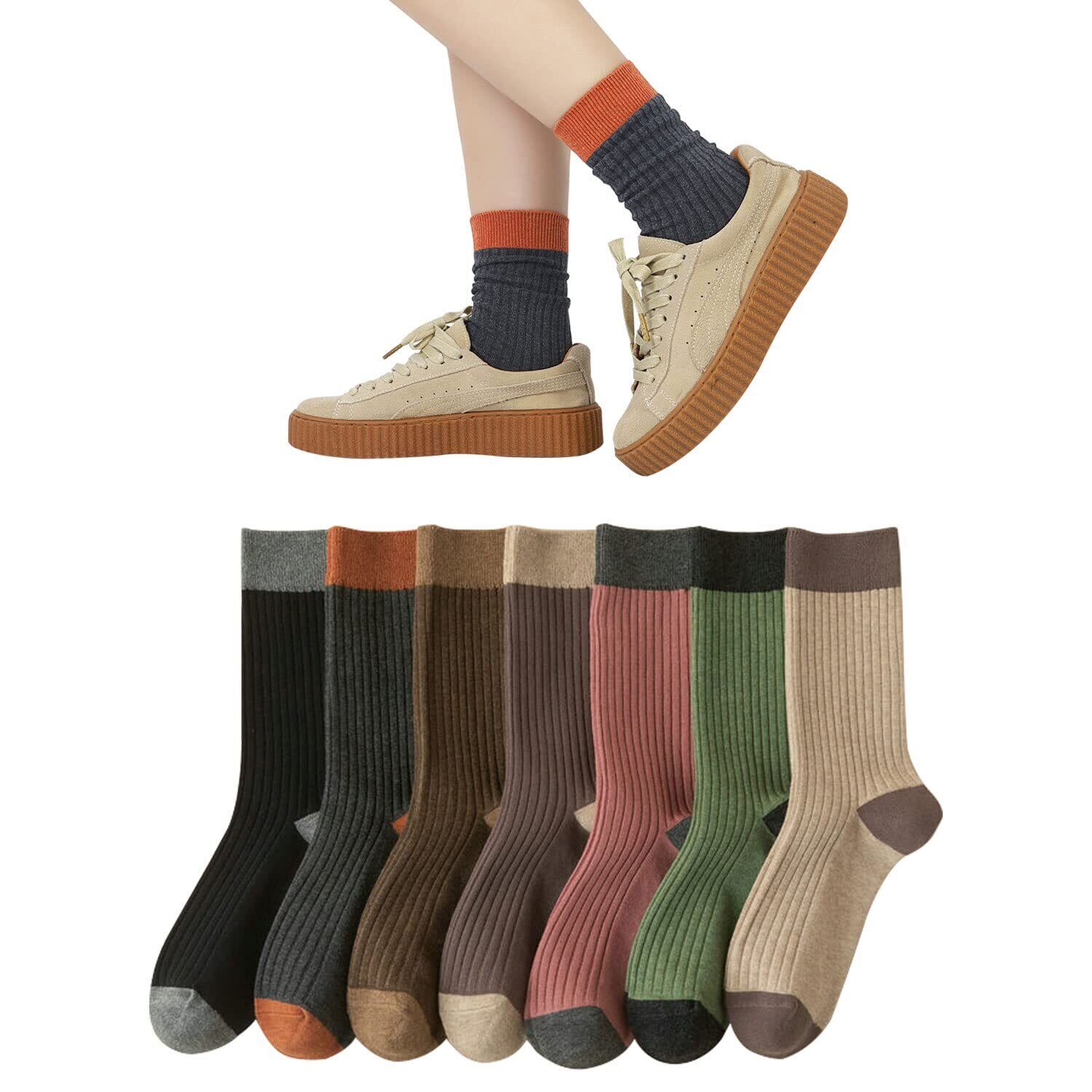 [DAMILY] 靴下 レディース 春夏秋冬 7足セット カラフルソックス 綿 くつした おしゃれ 女性用靴下 可愛い 脱げない カジュアル 保温靴下 スポーツソックス 婦人 クルーソックス 室内 22-25㎝ 通学 通勤