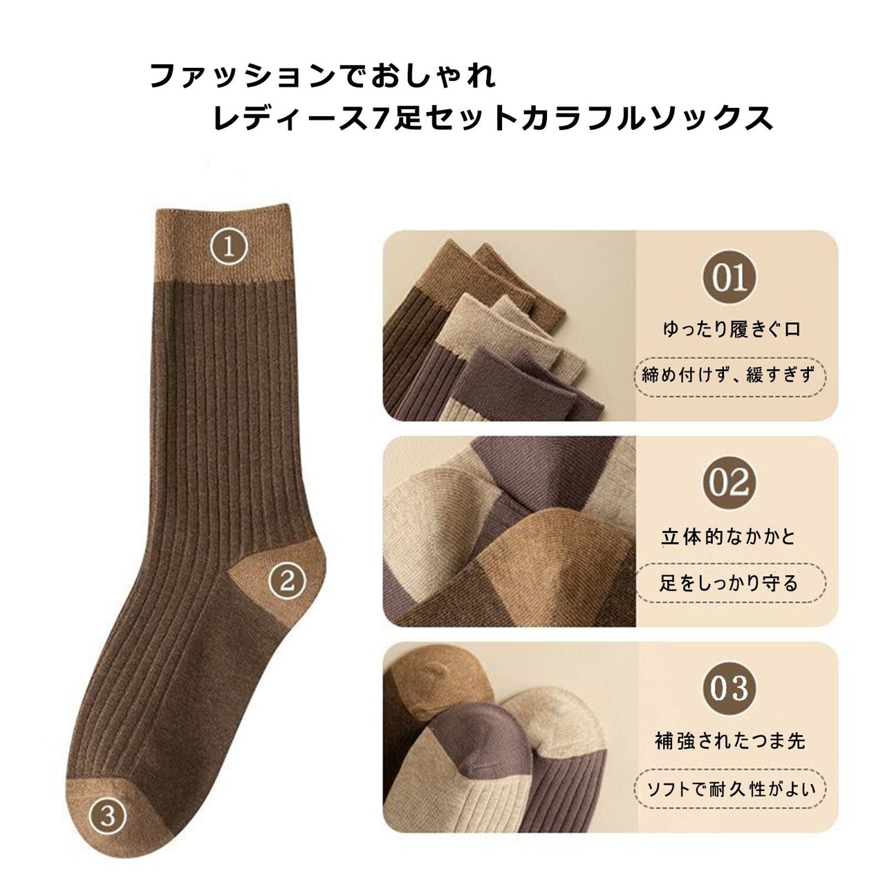 ·肌触りがソフトでなめらかで、伸縮性の高いリブ素材で、生地が程よい厚みなので、靴が窮屈になりにくく、オールシーズンに利用できるコットンソックス レディース可愛いくつした。