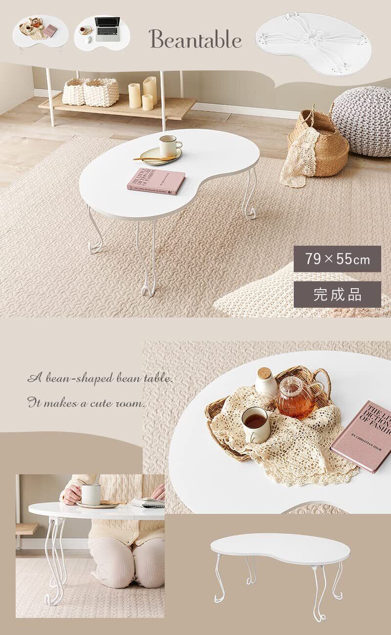 萩原(Hagihara) ローテーブル 折りたたみ ビーンズテーブル 韓国 インテリア 幅79 ホワイト 1台 MT-6639WH