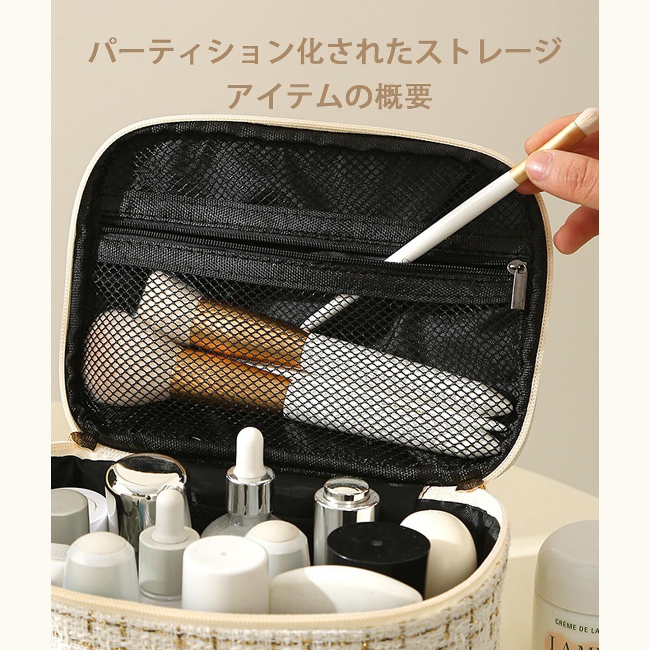【大容量】化粧品バッグは十分な収納スペースを提供します。化粧品、ブラシ、アイシャドウパレットなど、あらゆるアイテムをきちんと分類して整理できます。