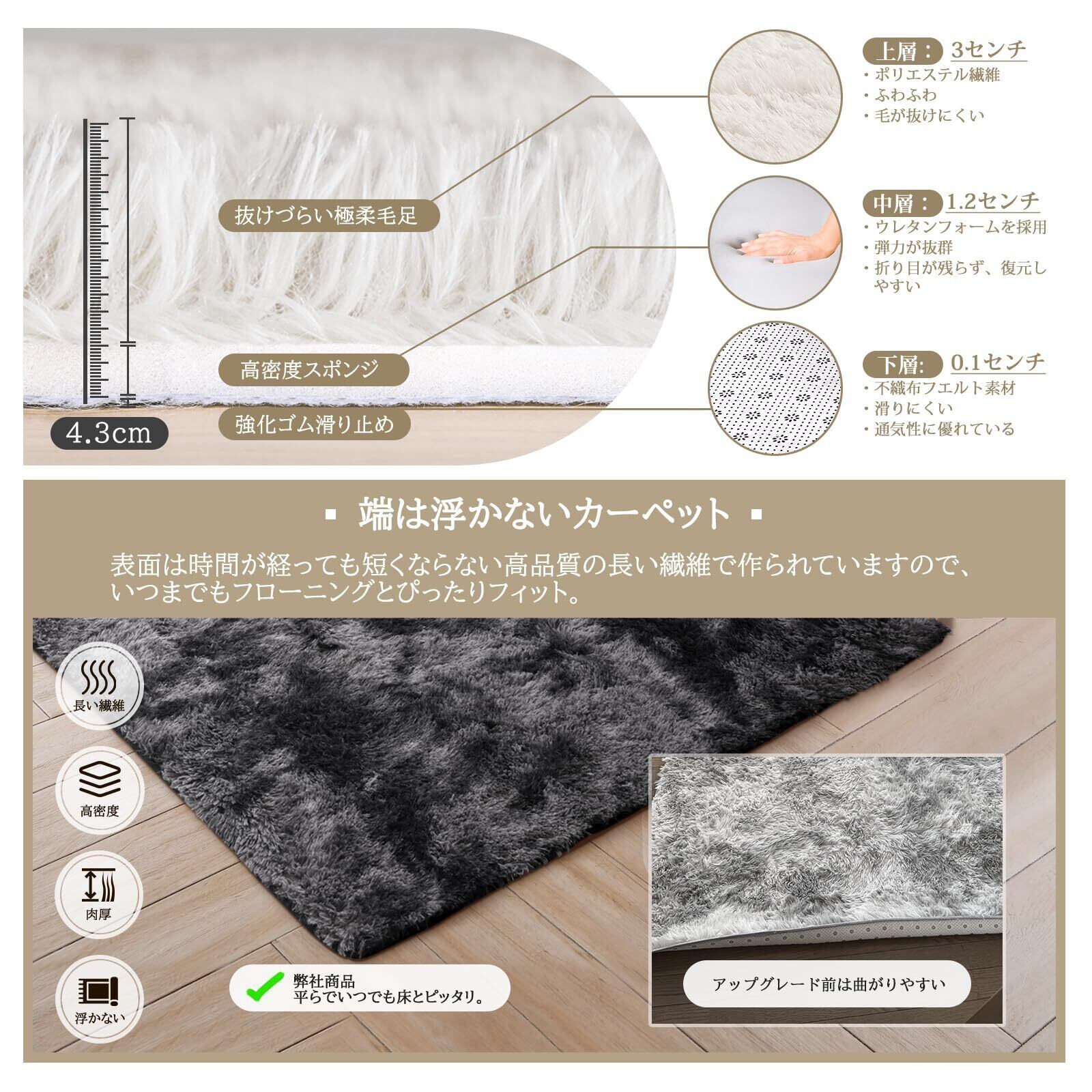 【高クッション性】12mmの厚みで、通常のカーペットより柔らかく、足元に優しい設計。リビング、寝室、玄関、床暖房など、さまざまなシーンで活躍