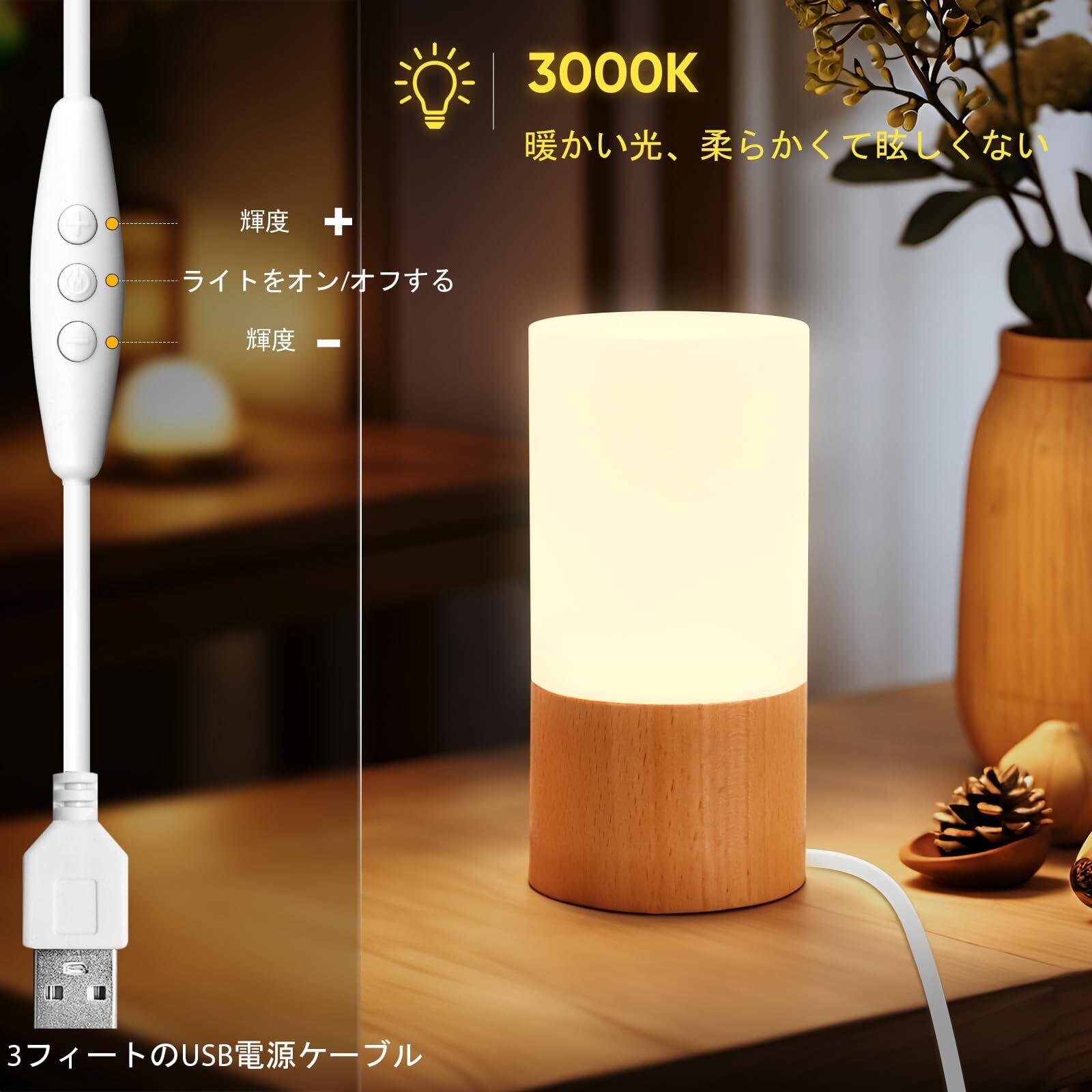 【実用性は高い】明るさは5段階まで調整でき、使用場所や状況に合わせて、自分好みの光を自由に制御でき、手軽にいい雰囲気が作れます。色温度:3000K、ワット数:3W、USB充電、本体サイズ:直径60mm、高さ130mm、電源コード長さ:1.2m、電圧:5v