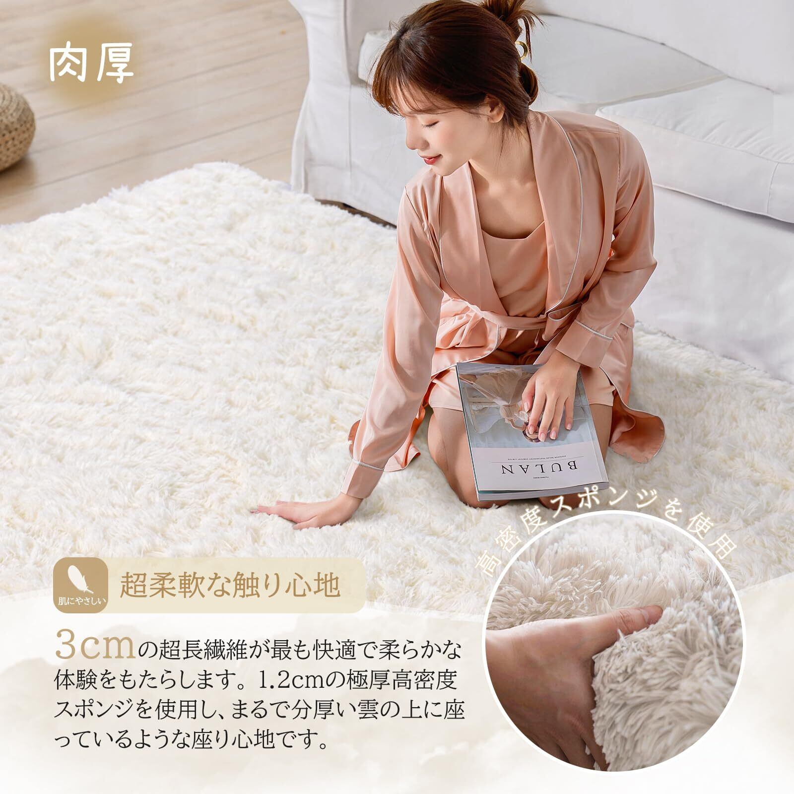 Beddiny カーペット ラグ ラグマット 洗えるラグ【中層:極厚30D高密度ウレタン 独自技術の抗菌防臭加工】絨毯 オールシーズン快適に使用 滑り止め付き 高密度シャギーラグ アイボリー 120×160cm