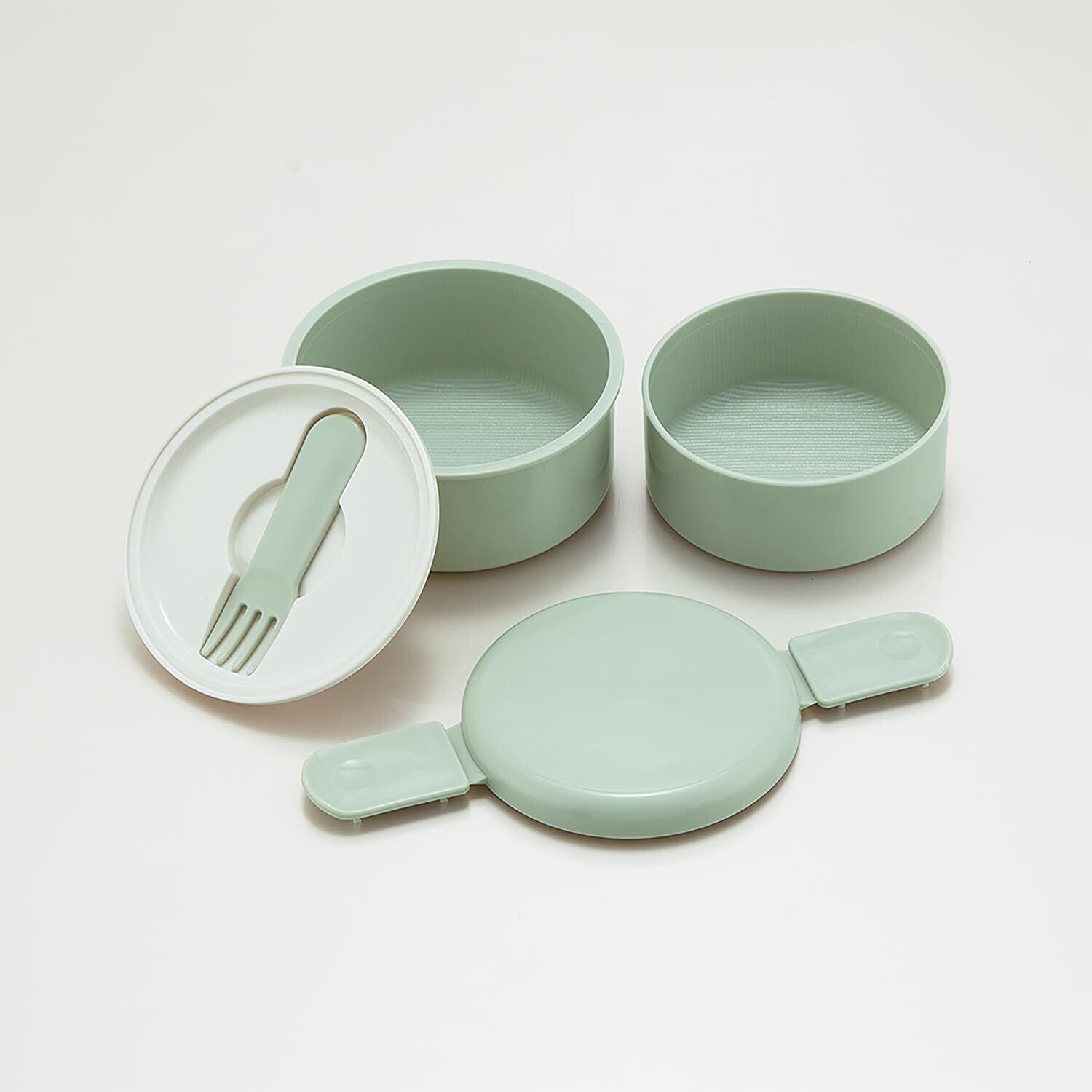 【2022最新】スケーター(Skater) バイオマス フォーク付 丸型 ランチボックス 弁当箱 2段 500ml 入れ子式 電子レンジ対応 日本製 セピアグリーン ONWR1B