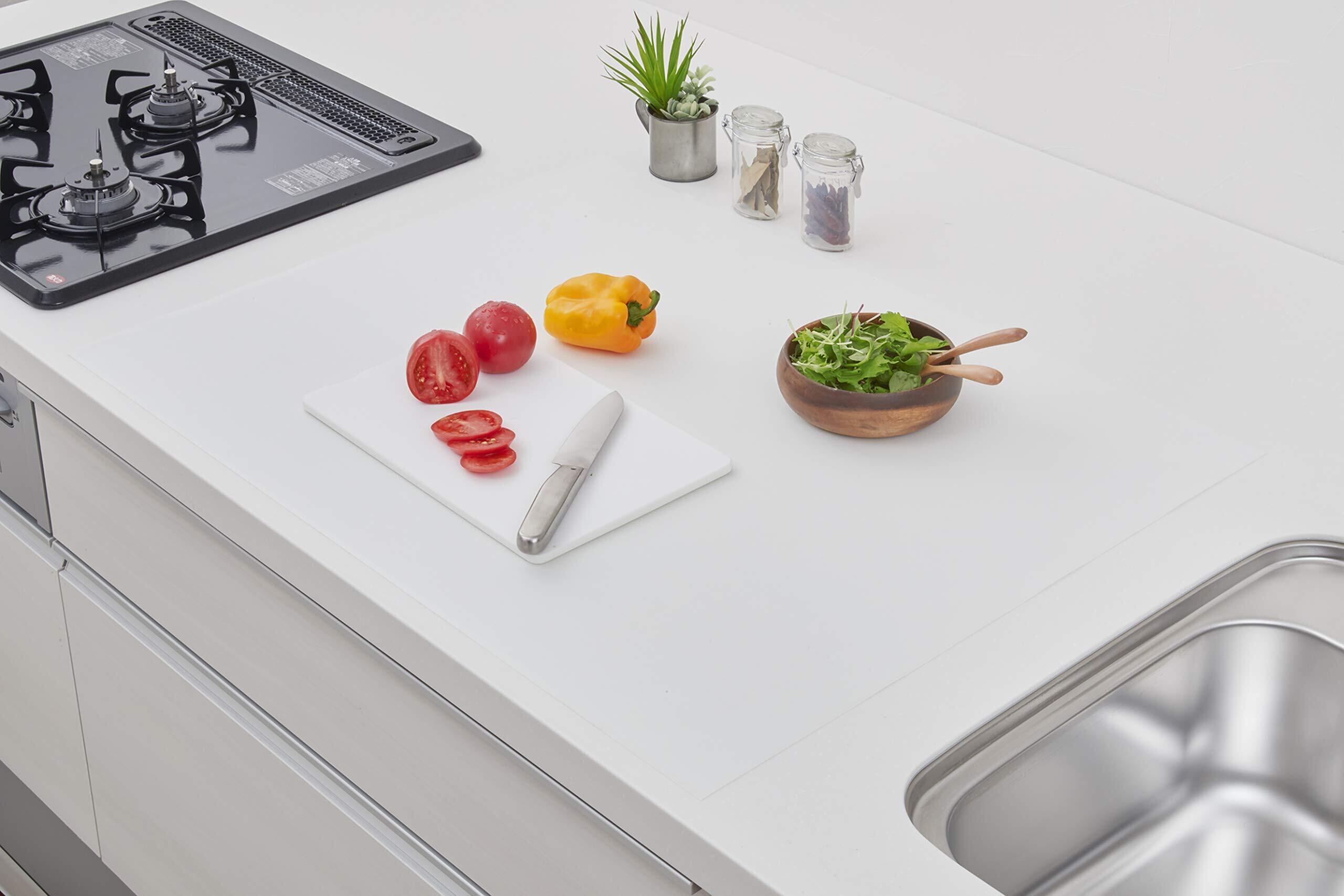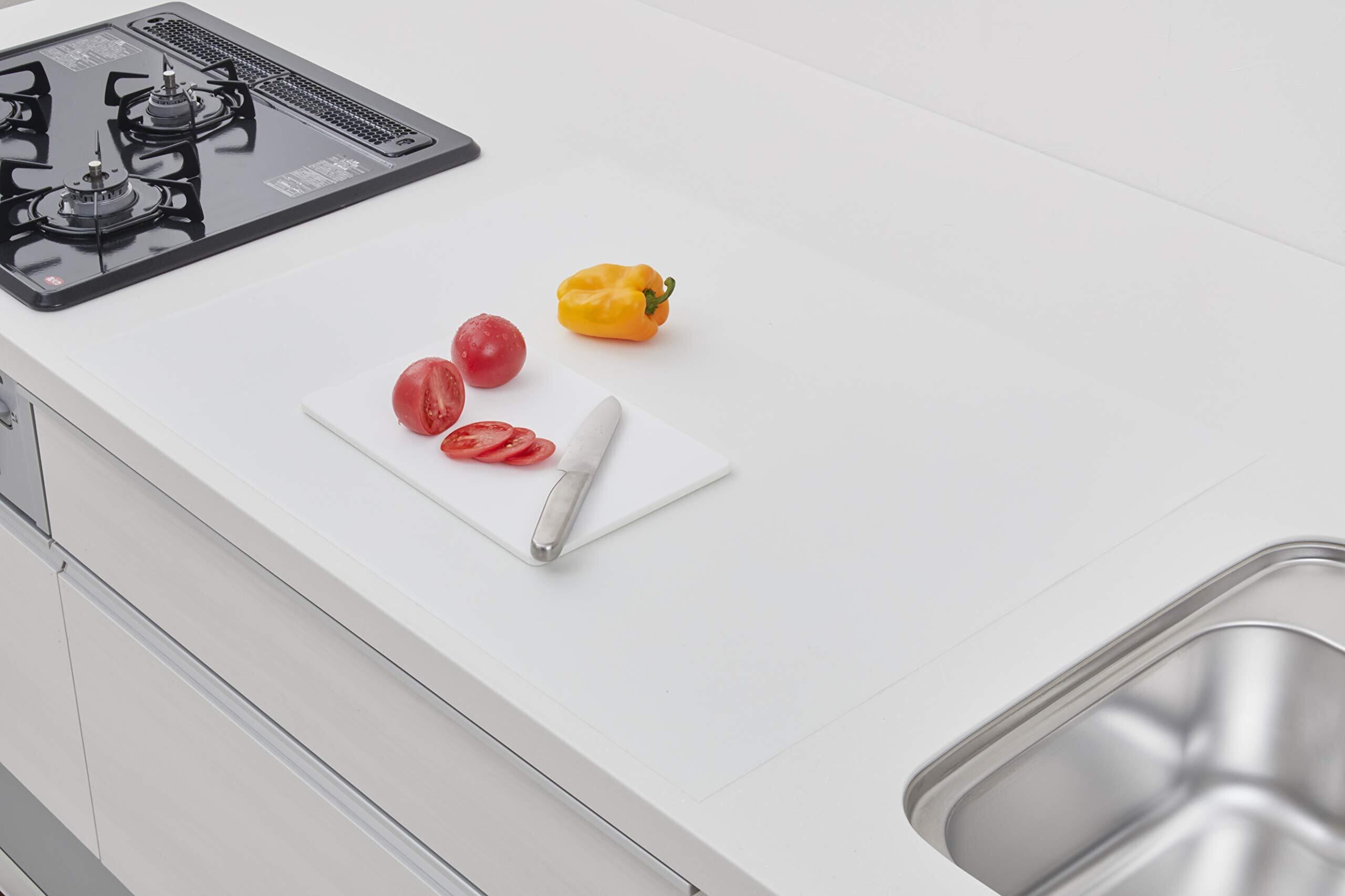 【数量限定】アール(R) ペタッと吸着シリコン調理台保護マット 予防掃除 無地 60×80×0.04(cm) 薄型 耐熱温度210℃ カットできる 汚れ防止 SM-504